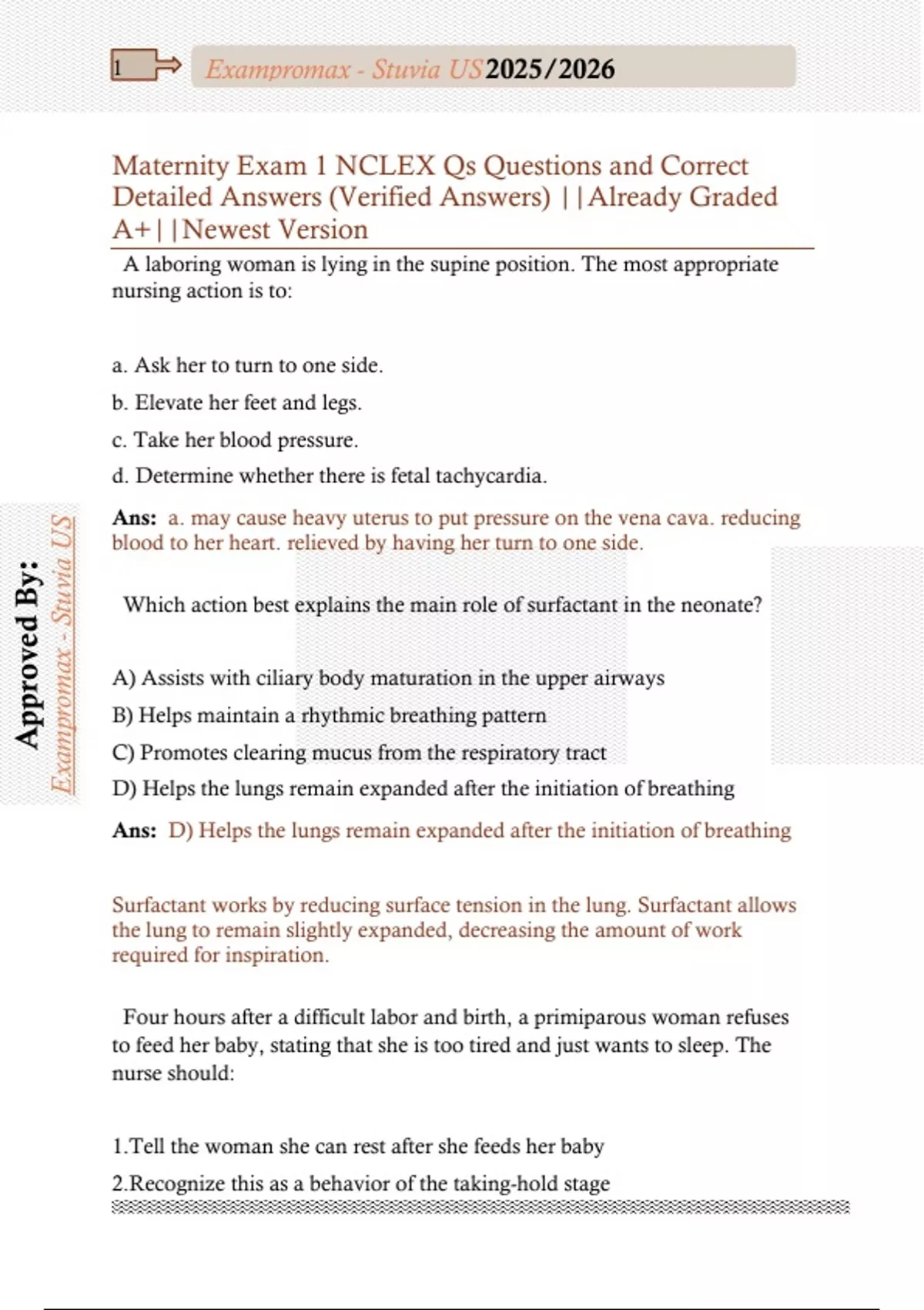 Maternity Exam 1 NCLEX Qs Questions and Correct Detailed Answers (Verified Answers) ||Already Graded A+||Newest Version