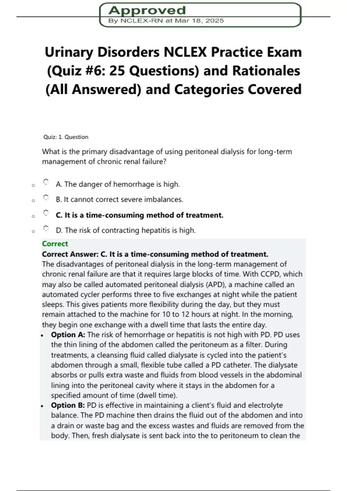 Urinary Disorders NCLEX 2025 Questions and Rationales (All Answered) and Categories Covered