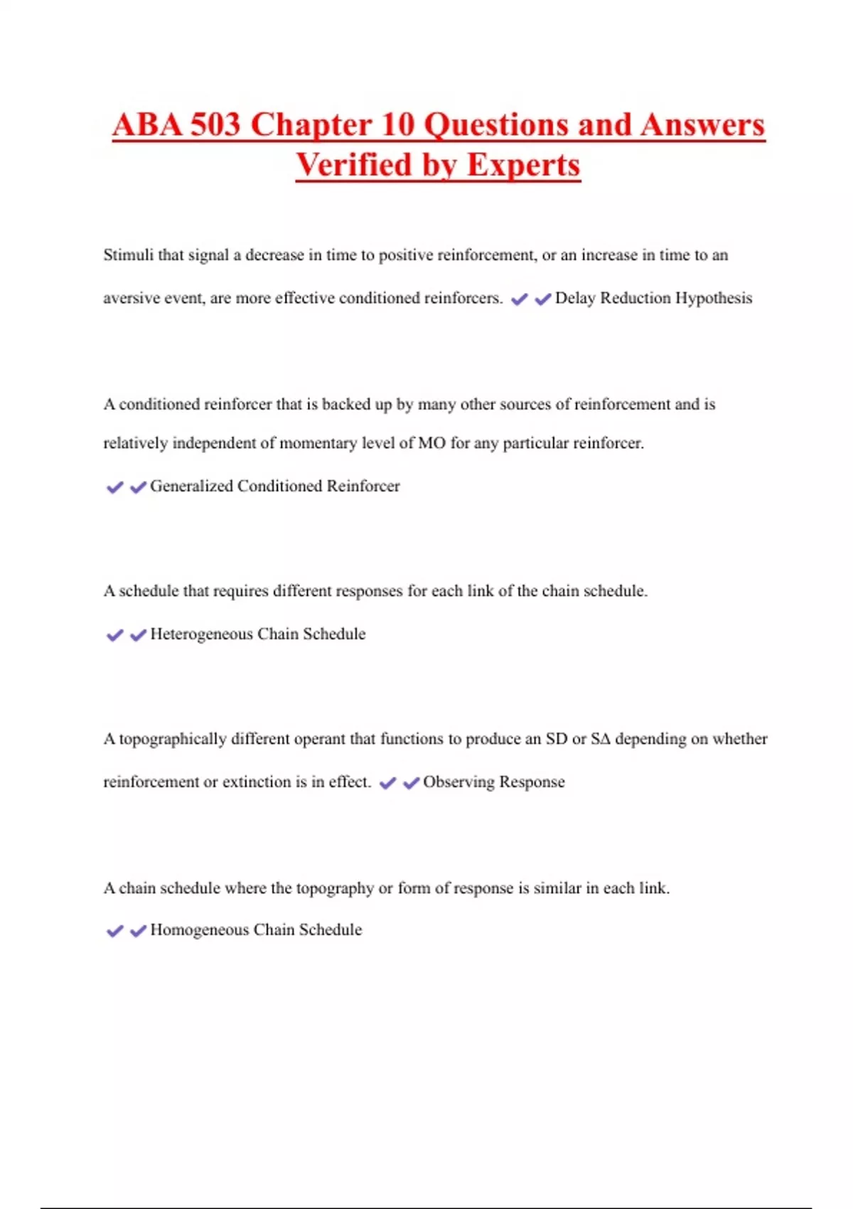 ABA 503 Chapter 10 Questions and Answers Verified by Experts 2 Exam (elaborations) ABA 503: SAFMEDS 3 Questions and Answers Graded A+ 3 Exam (elaborations) ABA 503: SAFMEDS 1 Questions and Answers Verified by Experts 4 Exam (elaborations) ABA 503: Chapter 11 Questions and Answers 100% Solved