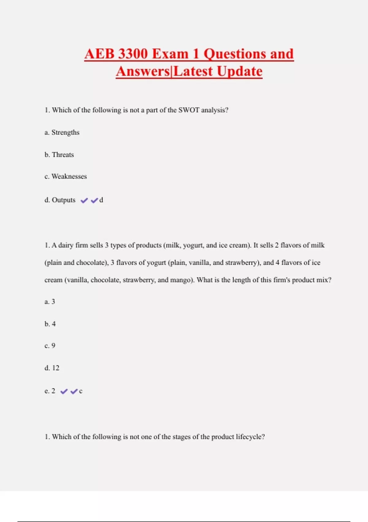 AEB 3300 Exam 1 Questions and Answers|Latest Update 2 Exam (elaborations) AEB 3300 Exam 2 Questions and Answers 100% Solved 3 Exam (elaborations) AEB 3300 Exam 3 Questions with Complete Solutions 4 Exam (elaborations) AEB3300 Exam 1 Questions with Complete Solutions