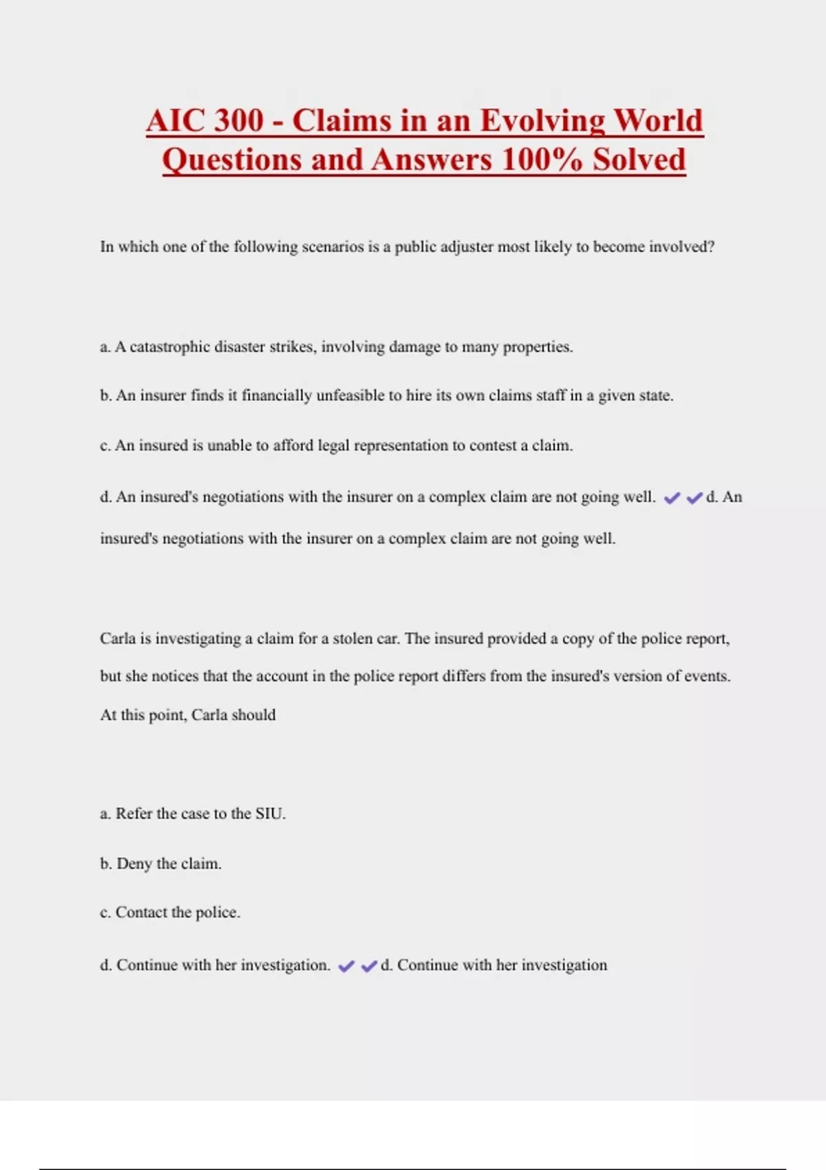 AIC 300 - Claims in an Evolving World Questions and Answers 100% Solved 2 Exam (elaborations) AIC 300 Exam Questions with Correct Answers Graded A+