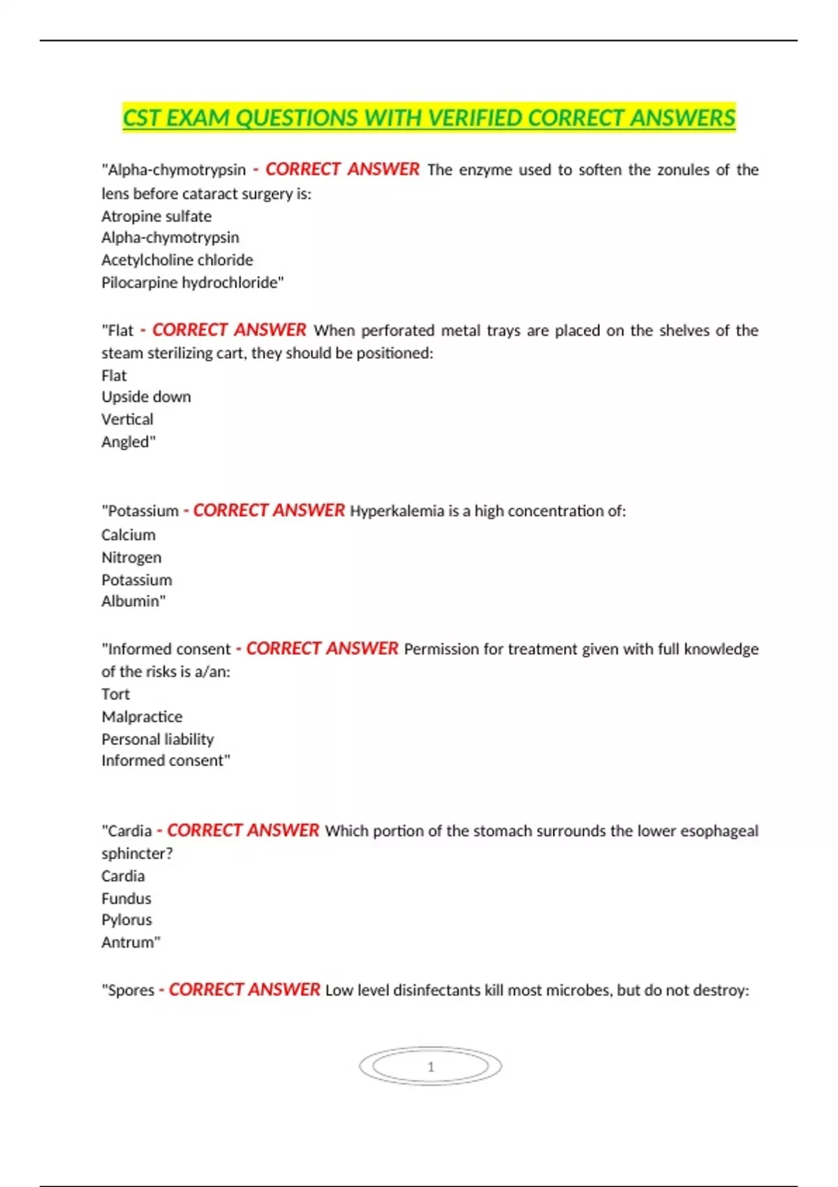 CST EXAM QUESTIONS WITH VERIFIED CORRECT ANSWERS