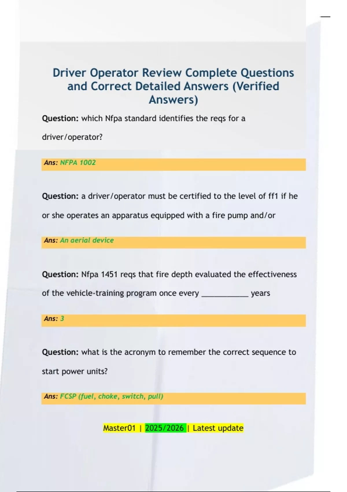 Driver Operator Complete Questions and Correct Detailed Answers (Verified Answers)