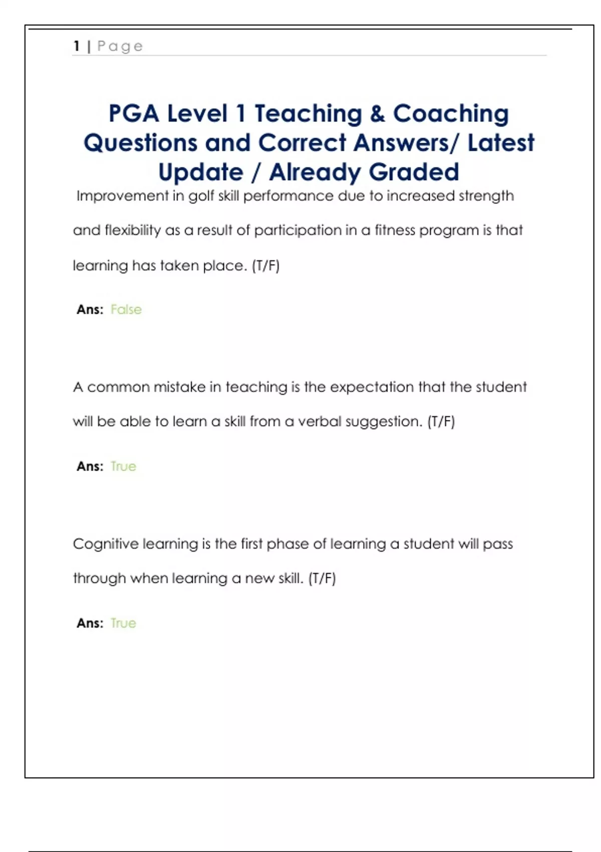 PGA Teaching and Coaching Questions and Correct Answers/ Latest Update / Already Graded
