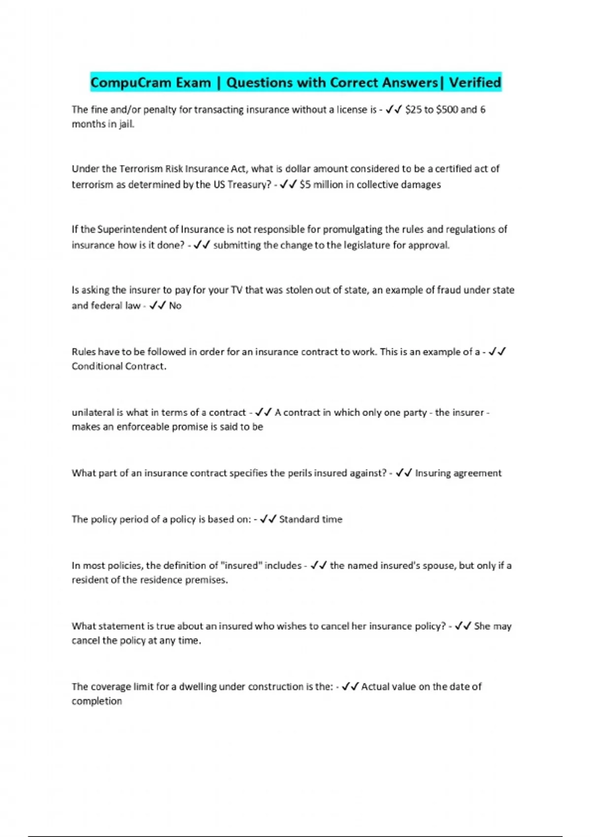 EXAMS BUNDLE:::::CompuCram Exams | Questions with Correct Answers| Verified