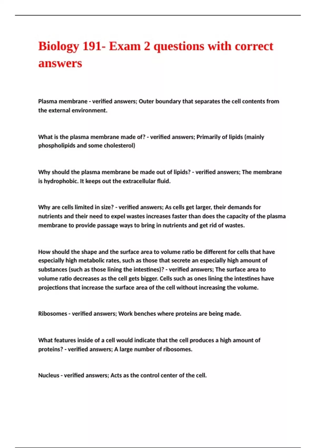 BIOL 191- Exam1 questions with correct answers.