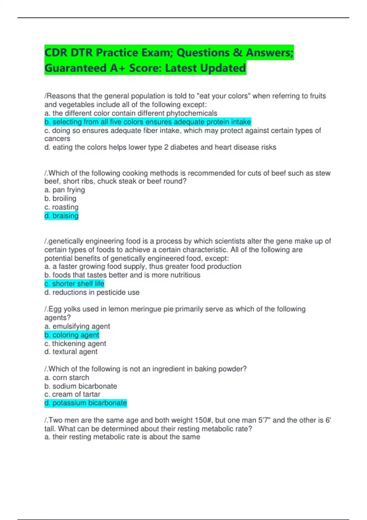 1 Exam (elaborations) FL CDR Sample questions module 9-15: Sample Questions & Answers | A+ Score Solution 2 Exam (elaborations) CDR DTR Practice Exam; Questions & Answers; Guaranteed A+ Score: Latest Updated 3 Exam (elaborations) CDR DTR Practice Exam: 100% Verified Questions & Answers: A+ Guide Solution 4 Exam (elaborations) CDR RD Exam: RD CDR