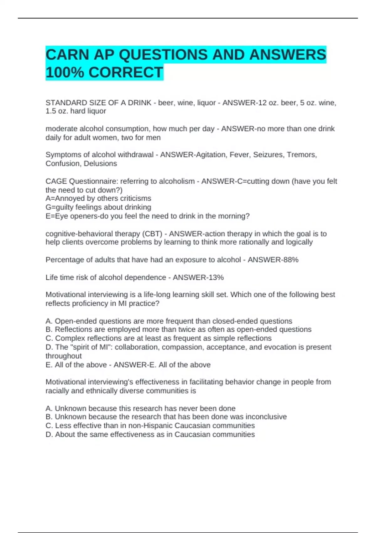 CARN-AP EXAM STUDY BUNDLE- LATEST UPDATE 100% CORRECT!!CARN-AP EXAM STUDY BUNDLE- LATEST UPDATE 100% CORRECT!!CARN-AP EXAM STUDY BUNDLE- LATEST UPDATE 100% CORRECT!!CARN-AP EXAM STUDY BUNDLE- LATEST UPDATE 100% CORRECT!!CARN-AP EXAM STUDY BUNDLE- LATEST UPDATE 100% CORRECT!!CARN-AP EXAM STUDY BUNDLE- LATEST UPDATE 100% CORRECT!!CARN-AP EXAM STUDY B