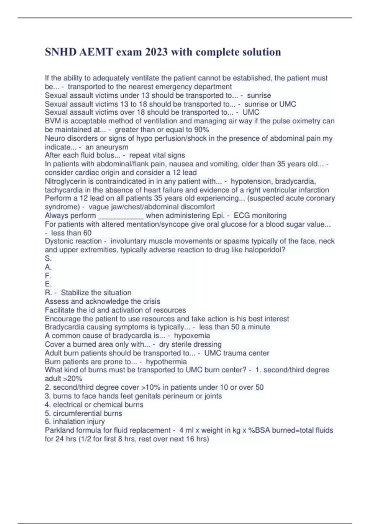 Exam (elaborations) SNHD AEMT Protocol Exam with 153 Actual questions and answers RATED A+ 2025/26 REVISED EDITION 2 Exam (elaborations) SNHD AEMT protocol study set WITH 184 ACTUAL EXAM QUESTIONS AND ANSWERS LATEST EDITION 2025/2026 3 Exam (elaborations) SNHD AEMT Protocols Questions and answers | Latest 2024/25 RATED A+ 4 Exam (elaborations) S