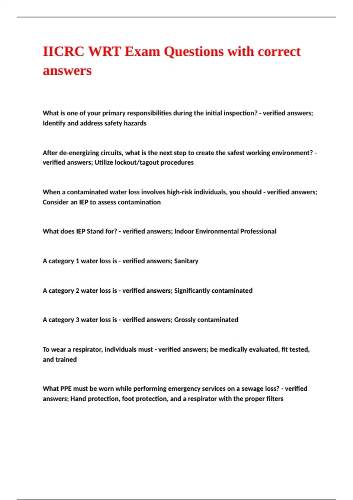 IICRC WATER RESTORATION EXAM QUESTIONS WITH CORRECT ANSWERs