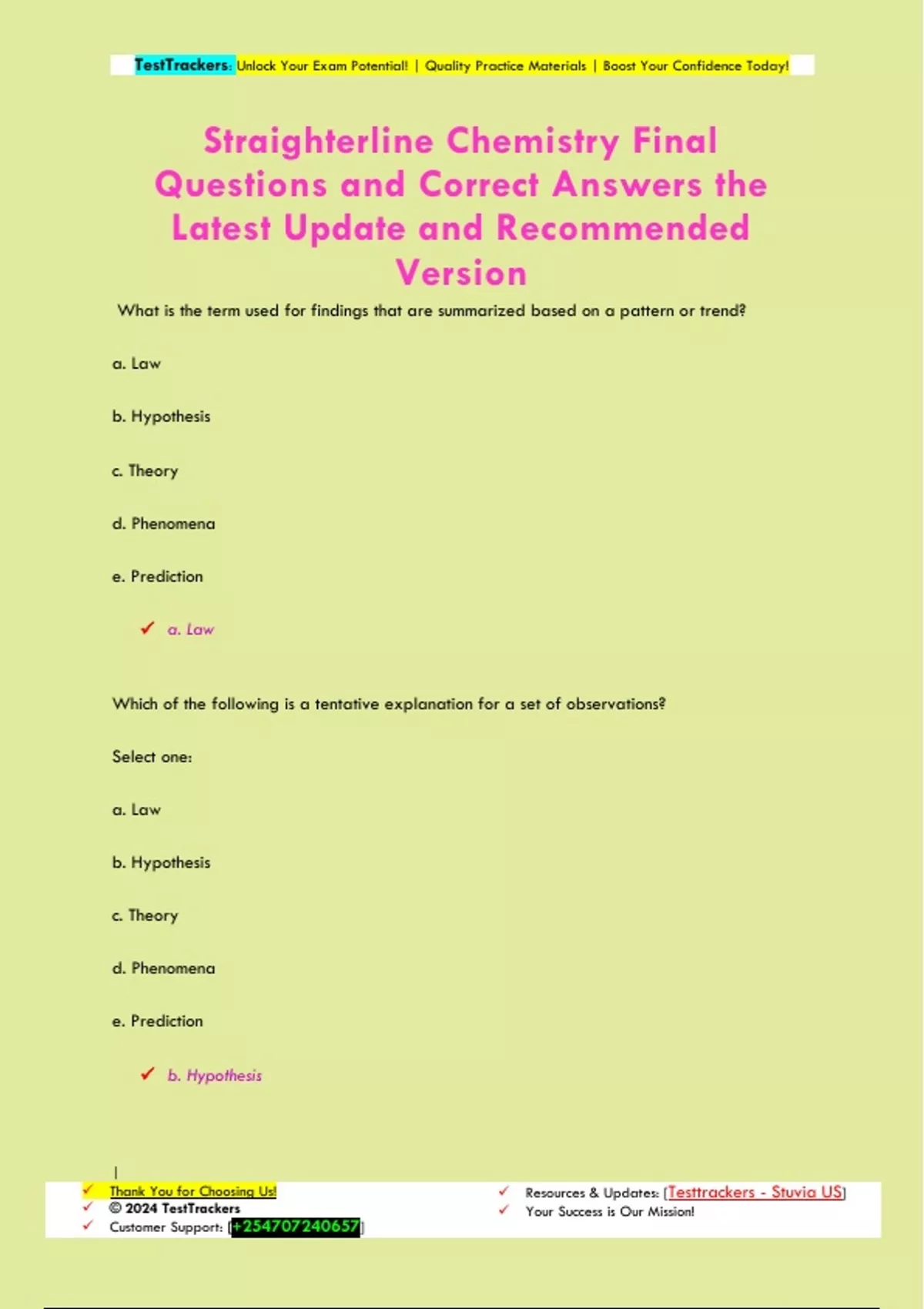 Straighterline Chemistry Final Questions and Correct Answers the Latest Update and Recommended Version