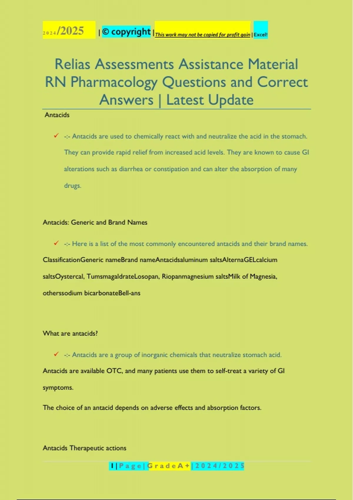 Relias Assessments Assistance Material RN Pharmacology Questions and Correct Answers | Latest Update