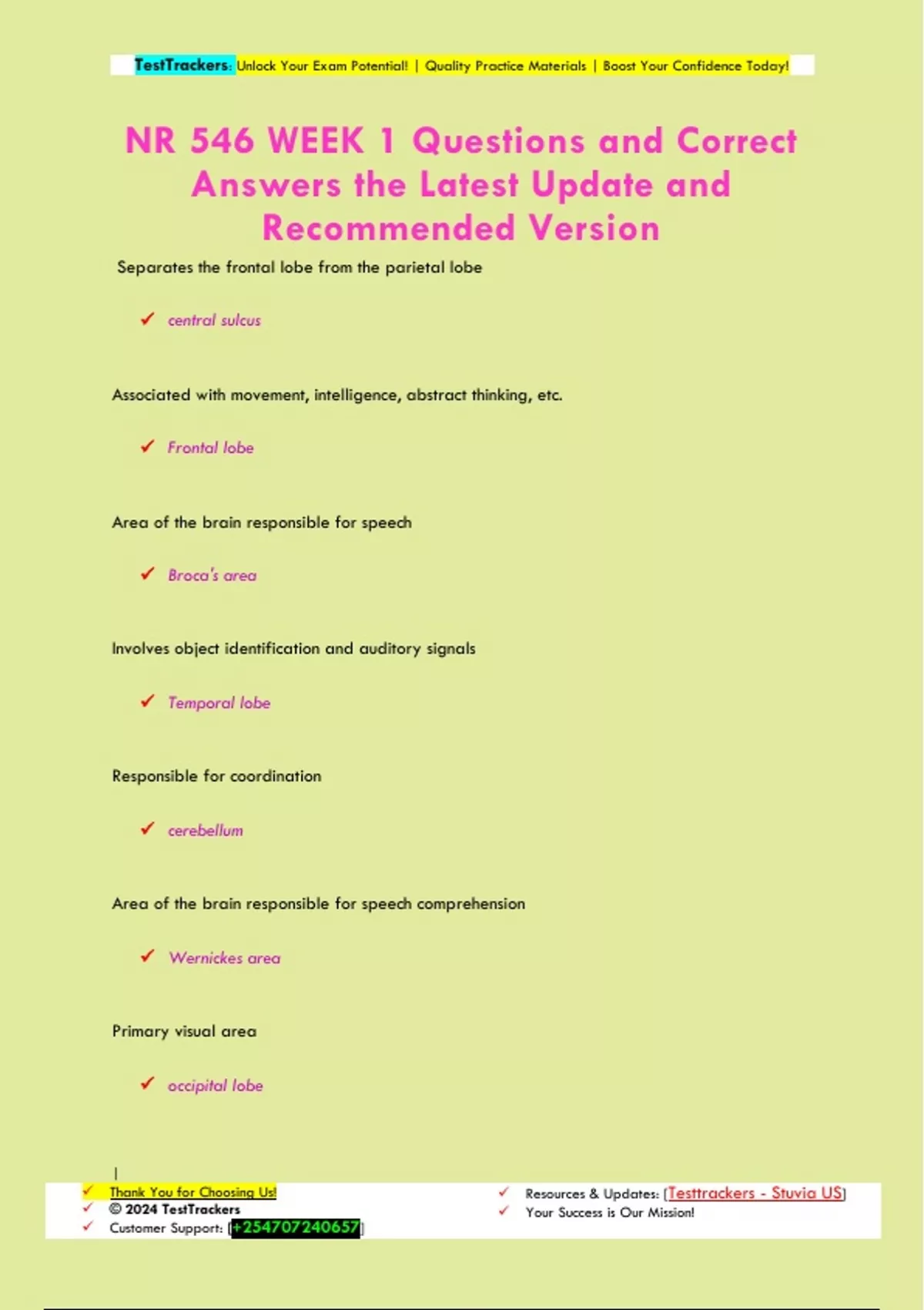 NR546 - Week 1, NR 546 WEEK 1 Questions and Correct Answers the Latest Update and Recommended Version