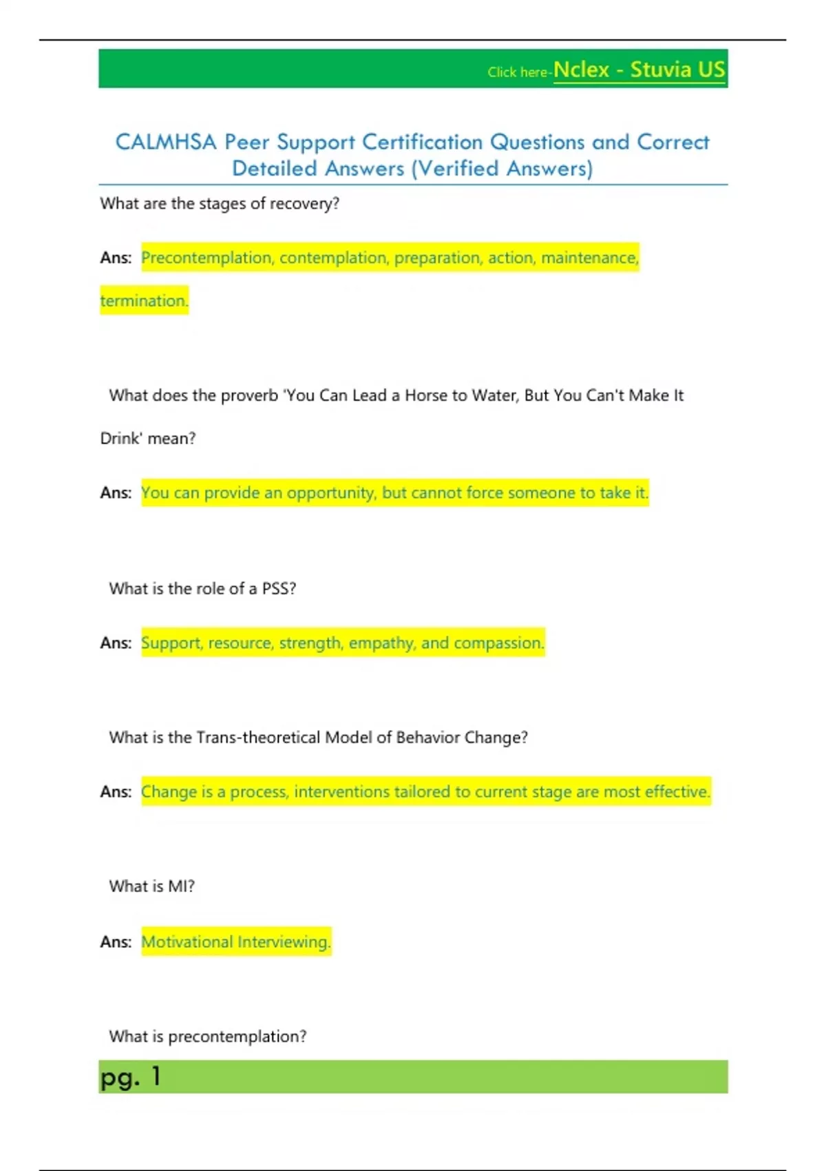 Peer Support Training Exam Questions and Correct Detailed Answers (Verified Answers)