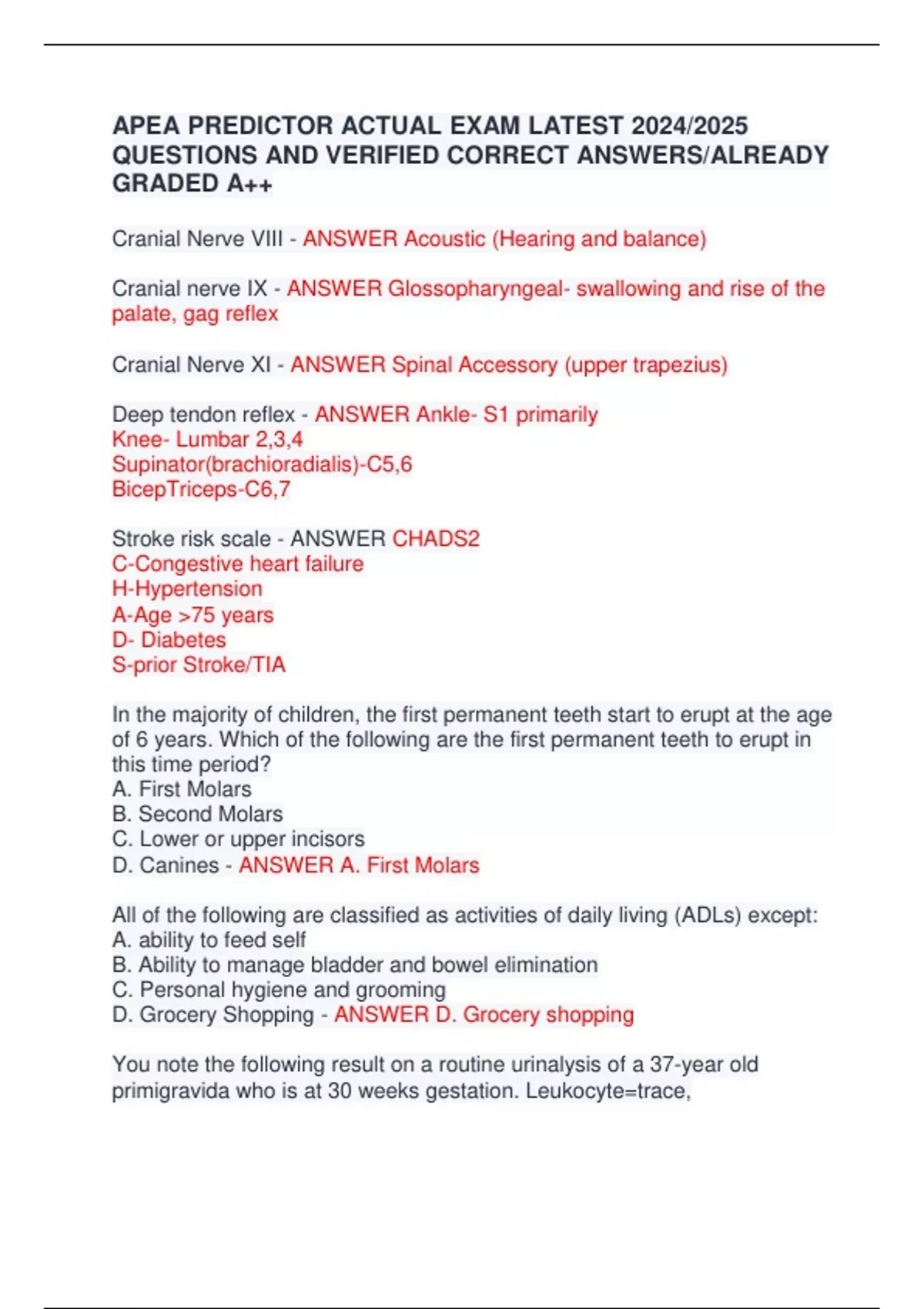 APEA PRE-PREDICTOR FINAL EXAM 2024/2025 WITH QUESTIONS AND VERIFIED CORRECT ANSWERS/ ALREADY GRADED A++ APEA PRE-PREDICTOR FINAL EXAM 2024/2025 WITH QUESTIONS AND VERIFIED CORRECT ANSWERS/ ALREADY GRADED A++