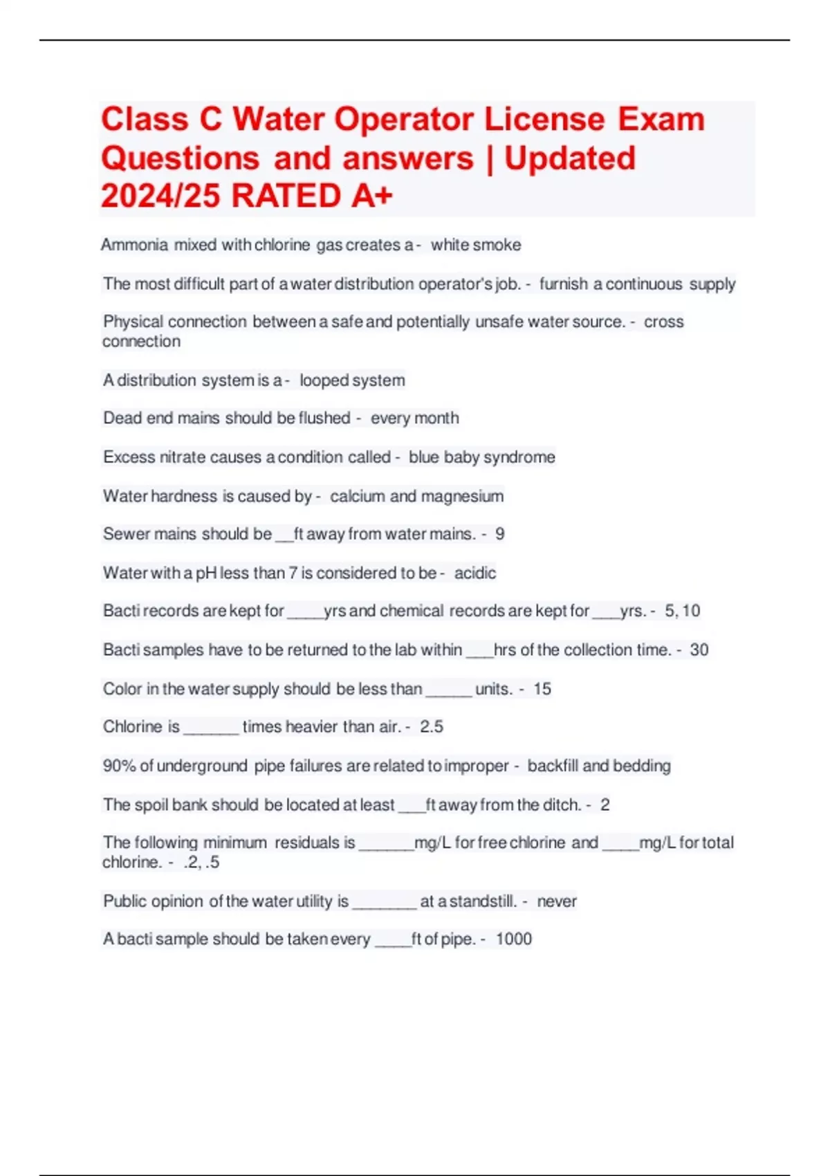 Exam (elaborations) Class C Water Operator License Exam Questions and answers | Updated 2024/25 RATED A+ 2 Exam (elaborations) Class C Water Operator License Exam Questions and answers Newest RATED A+ 2025/2026 3 Exam (elaborations) class c water license Exam Questions and answers Updated 2025/2026 Newest 4 Exam (elaborations) TCEQ class c water