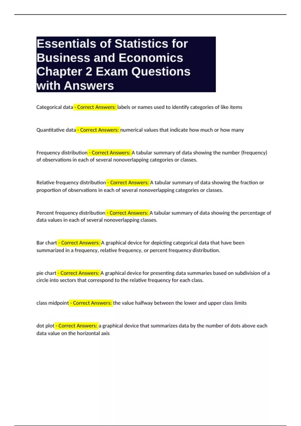Statistics for Business and Economics Bundle Compilation Grade A+