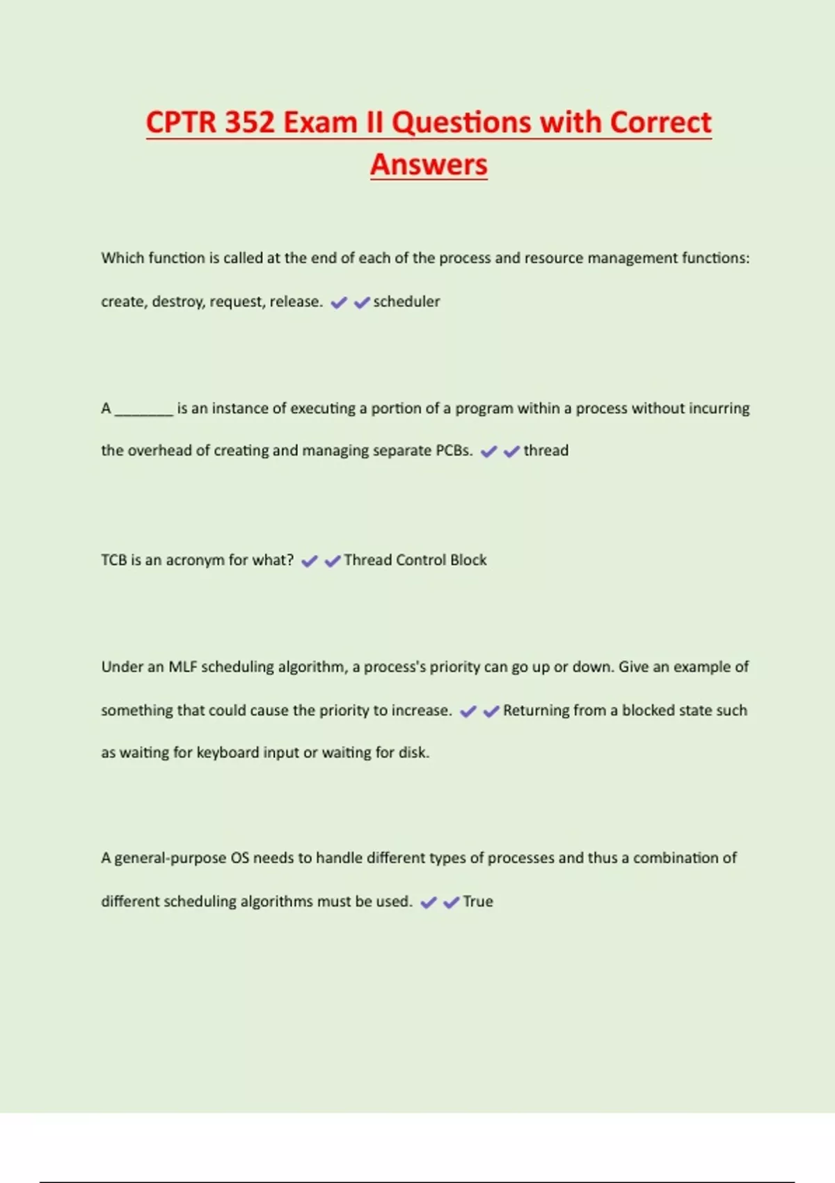 CPTR 352 Exam II Questions with Correct Answers 2 Exam (elaborations) CPTR 352-Test 2 Review Questions and Answers Verified by Experts 3 Exam (elaborations) CPTR 352 - Final Exam Review Questions with Complete Solutions