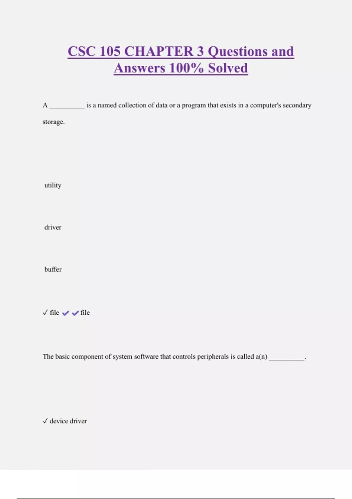 CSC 105 CHAPTER 3 Questions and Answers 100% Solved 2 Exam (elaborations) CSC 105 Final Exam Questions and Answers Verified by Experts 3 Exam (elaborations) CSC 105 midterm Questions with Complete Solutions 4 Exam (elaborations) CSC 105 Chapter 2 Questions with Complete Solutions 5 Exam (elaborations) CSC 105 Chapter 1 Questions with Correct An