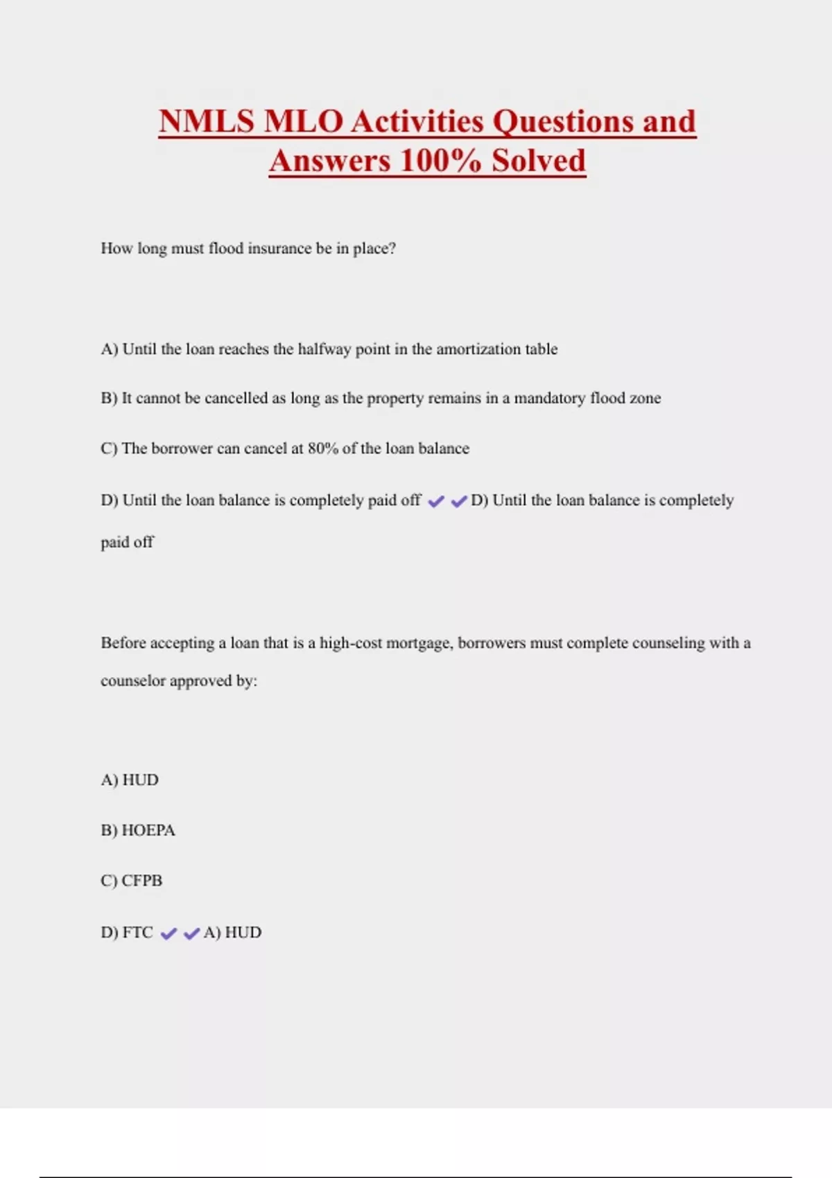 NMLS MLO Activities Questions and Answers 100% Solved 2 Exam (elaborations) NMLS EXAM PREP Questions And Answers With Latest Update 3 Exam (elaborations) NMLS MLO 10 2017 Questions With Complete Solutions 4 Exam (elaborations) MLO NMLS Flashcards 500+ Questions with Correct Answers|Latest Update