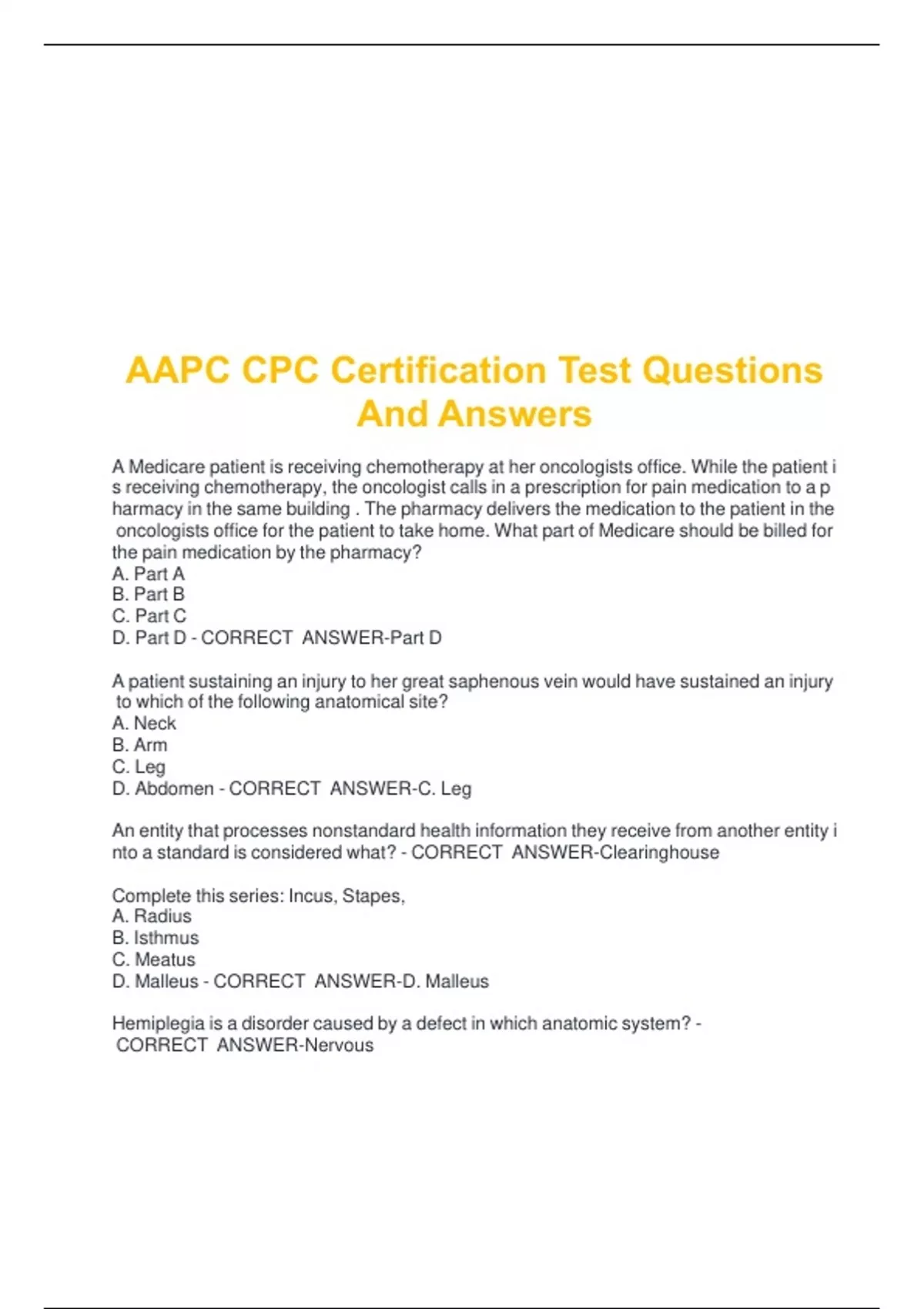 AAPC CPC Exam Questions And Answers AAPC CPC Final Exam 2022 Questions And Answers AAPC CPC FINAL Questions And Answers AAPC CPC Coding Guidelines Questions And Answers AAPC CPC Certification Test Questions And Answers AAPC CPC exam prep Compliance and Regulatory Questions And Answers AAPC CPC Practice Questions And Answers Review For AAPC CPC Exam