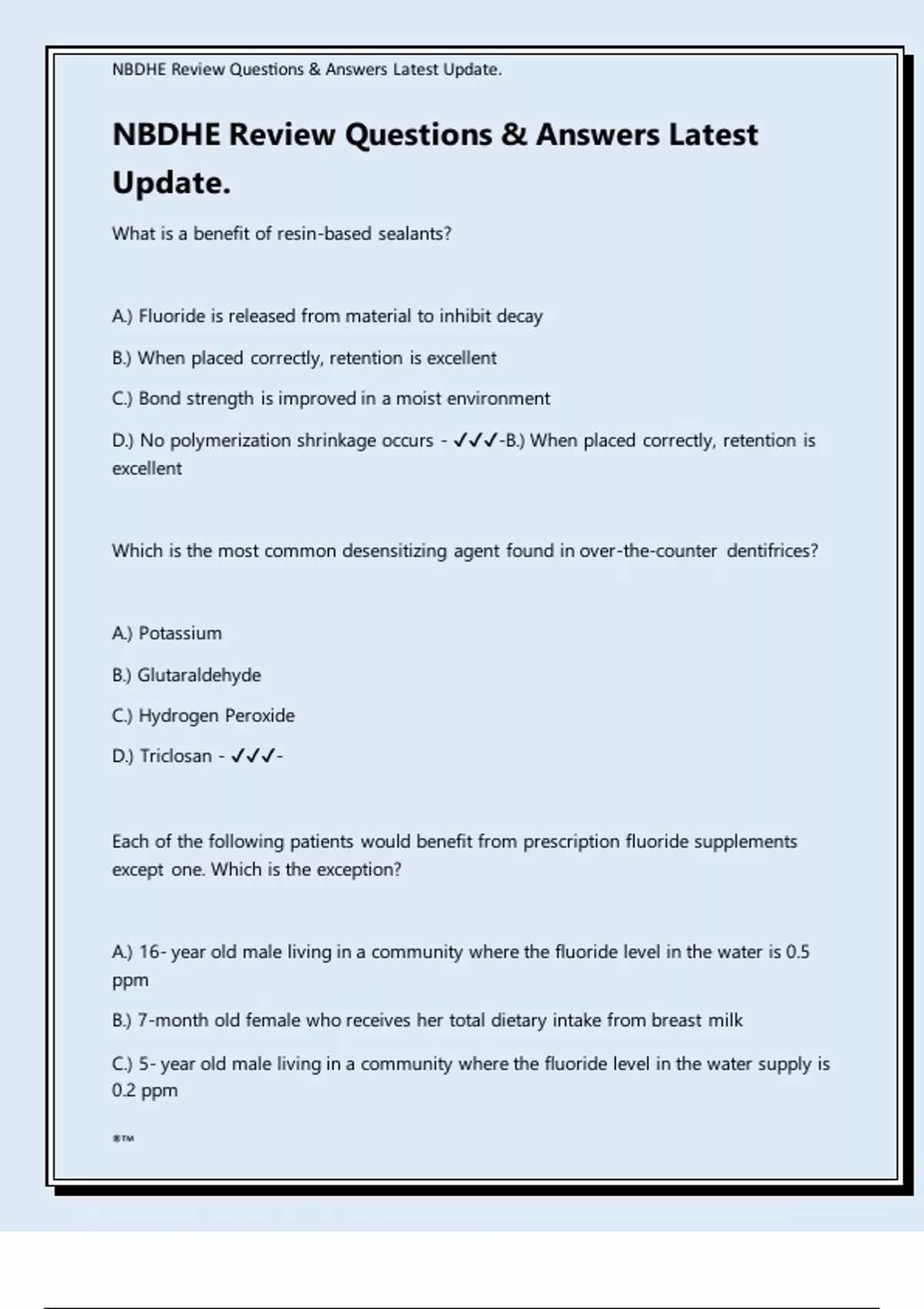 NBDHE Practice Test 1 Questions & Answers Latest Update.