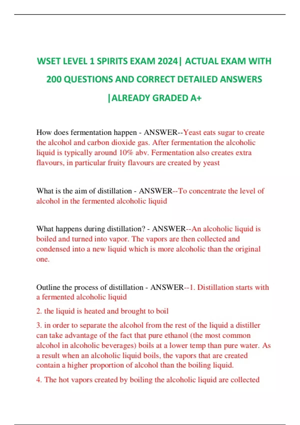 WSET LEVEL 1 AND 2 SPIRITS EXAM 2024| ACTUAL EXAM WITH 200 QUESTIONS AND CORRECT DETAILED AN SWERS |ALREADY GRADED A+