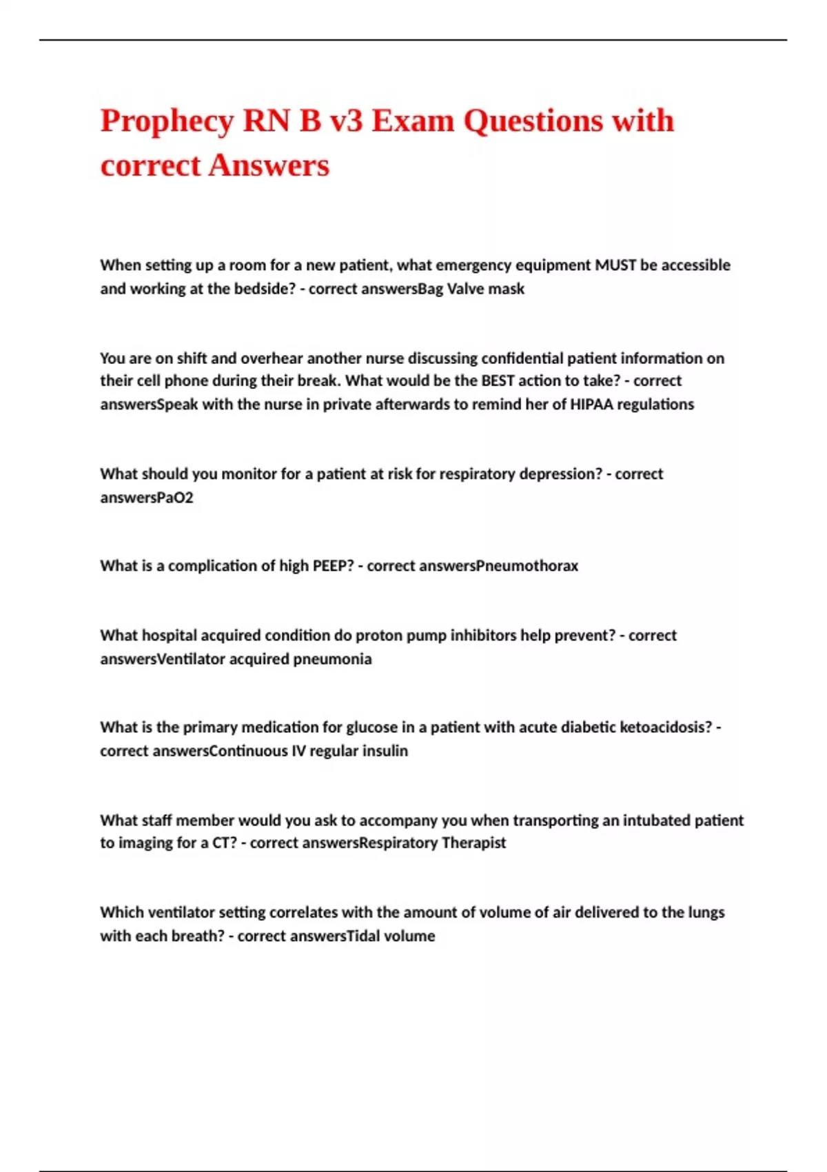 Prophecy general ICU A V3 exam questions with correct answers
