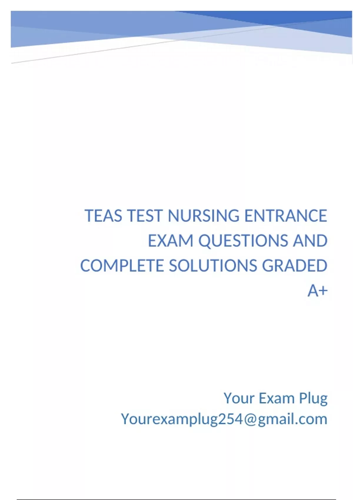 Nursing ATI TEAS 7 Test Questions and Complete Solutions Graded A Package Deal
