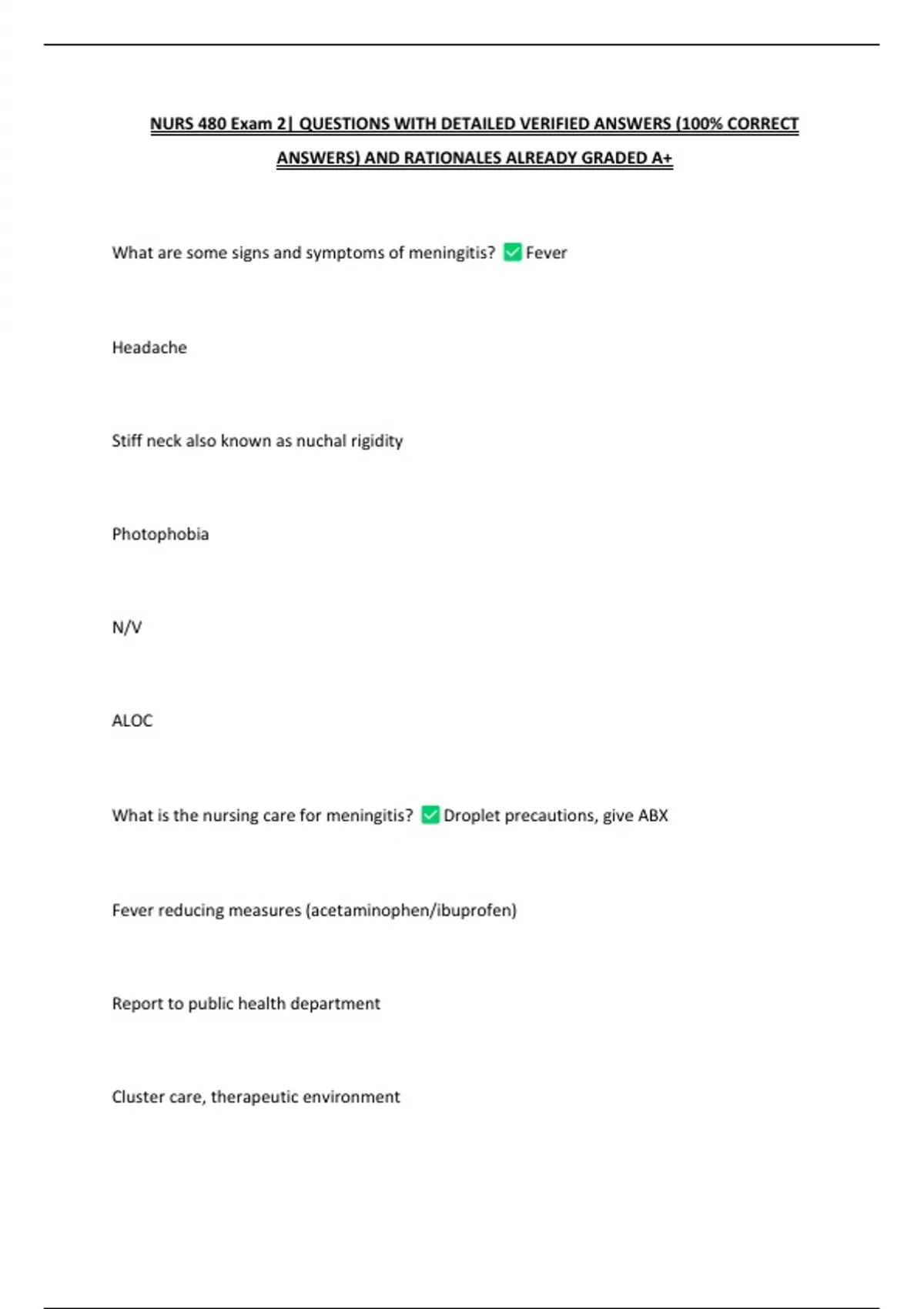 NURS 480 Exam 2| QUESTIONS WITH DETAILED VERIFIED ANSWERS (100% CORRECT ANSWERS) AND RATIONALES ALREADY GRADED A+ 2 Exam (elaborations) NURS480 FINAL EXAM 2025/2026 NEWEST ACTUAL EXAM QUESTIONS WITH DETAILED VERIFIED ANSWERS (100% CORRECT ANSWERS) ALREADY GRADED A+