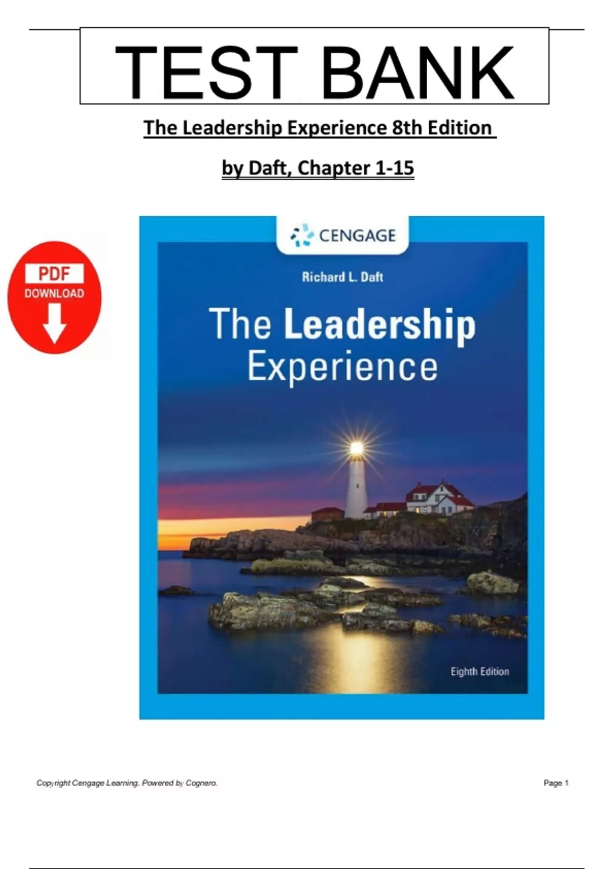 Complete Test Bank & Solution Manual for The Leadership Experience, 8th Edition by Daft, Chapters 1 - 15 Covered, Latest Edition