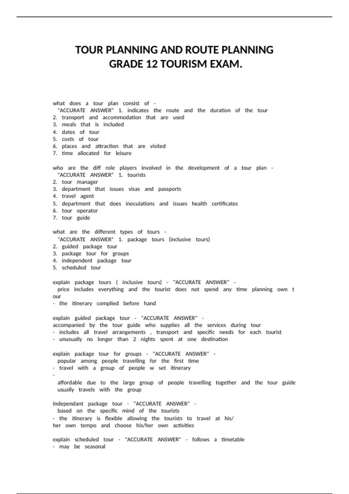 This is a full package deal for Tourism course. The package Includes examination questions with accurate and verified answers.