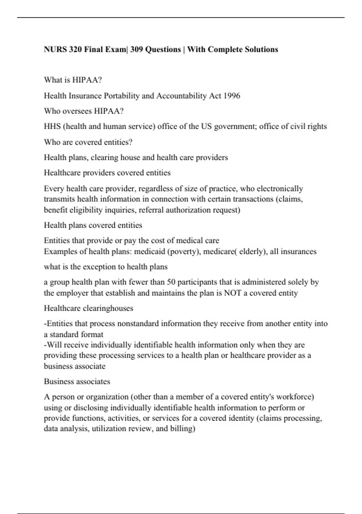 NURS 320 Final Review Questions with Complete Solutions