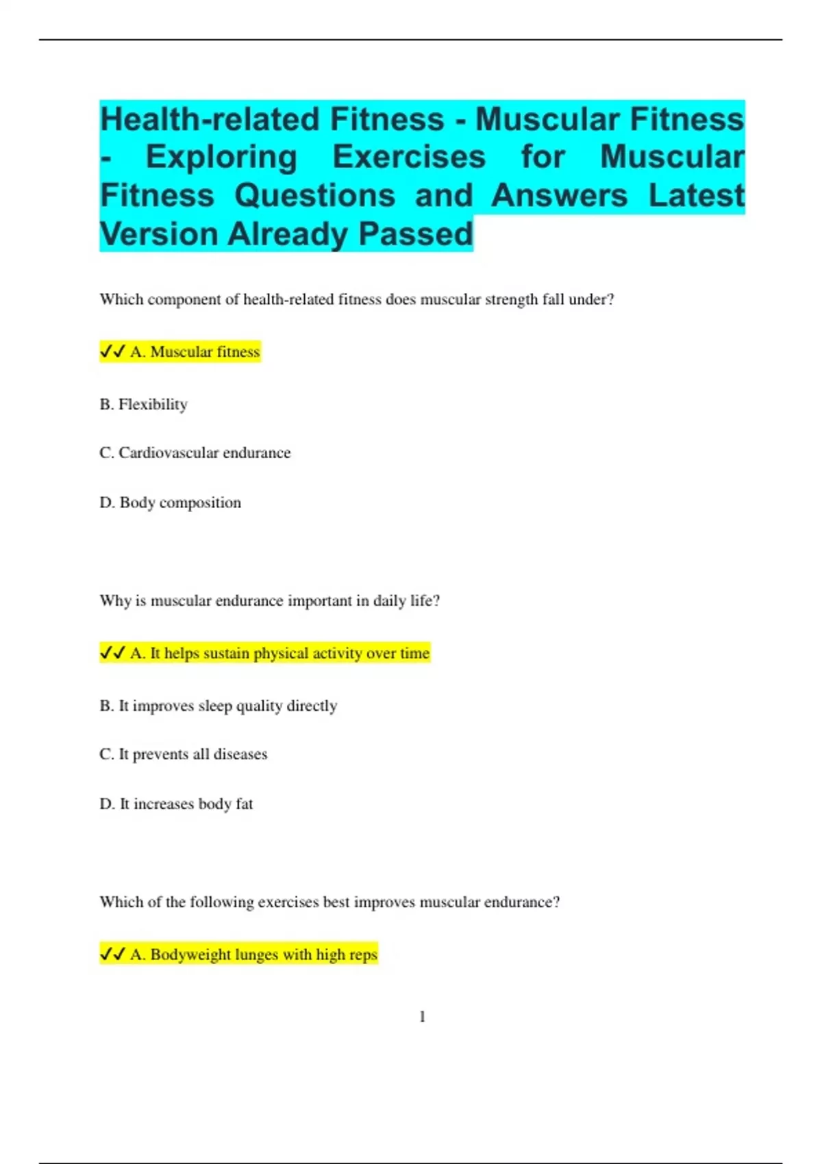 Health-Related Fitness Bundled Exams Questions and Answers Multiple Versions Latest Updates (2025/2026) (Complete and Accurate)