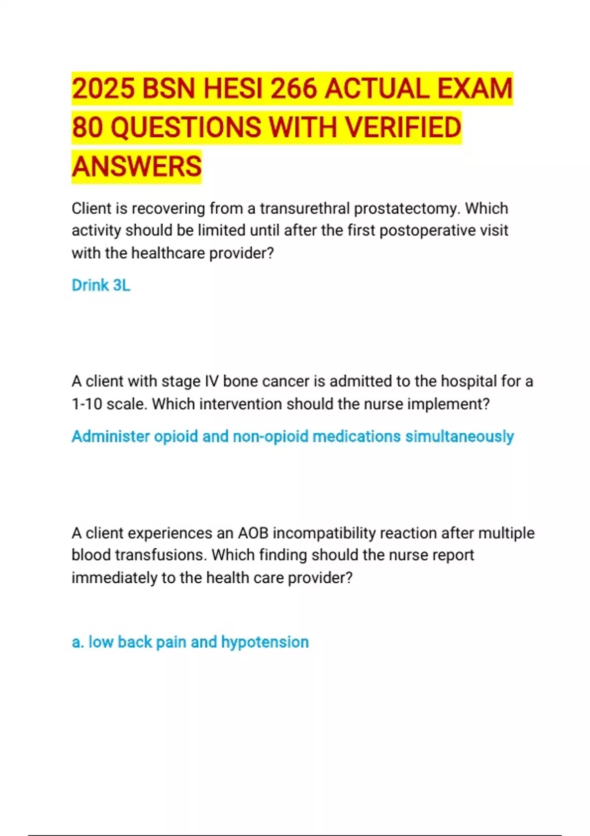 2025 BSN266 HESI ACTUAL EXAM BUNDLE LATEST UPDATED QUESTIONS AND VERIFIED CORRECT ANSWERS