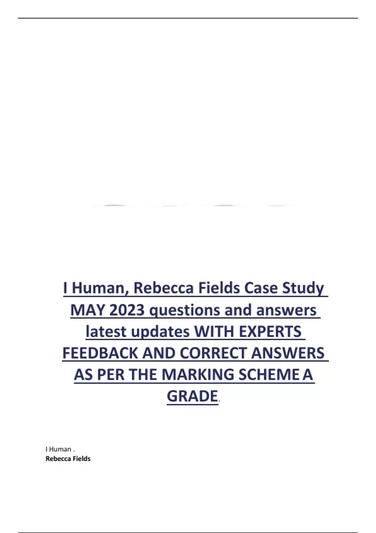 I Human, Rebecca Fields Case Study MAY 2023 questions and answers latest updates WITH EXPERTS FEEDBACK AND CORRECT ANSWERS AS PER THE MARKING SCHEMEA GRADE.