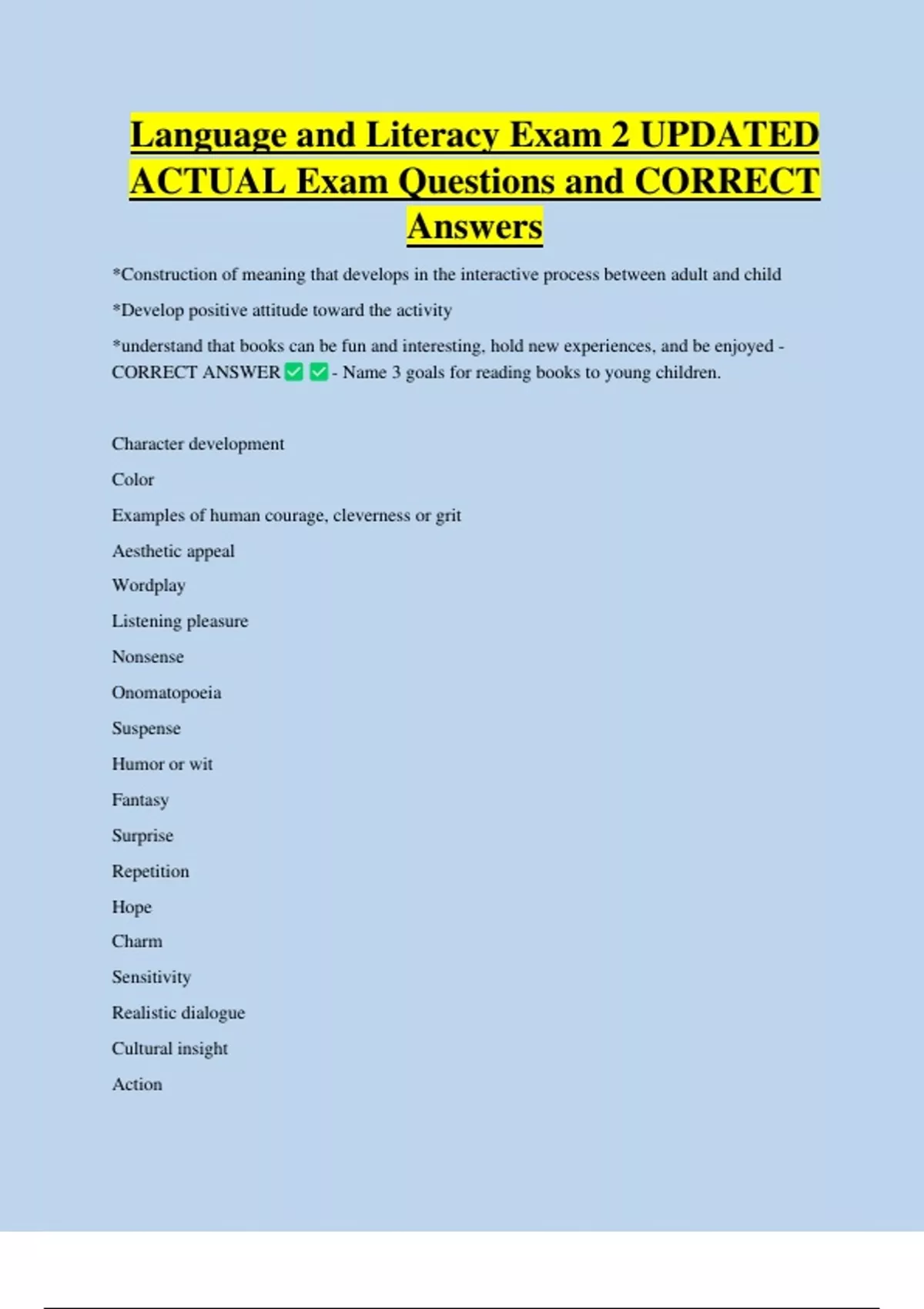 Language and Literacy Bundled Exam Questions WITH CORRECT Answers