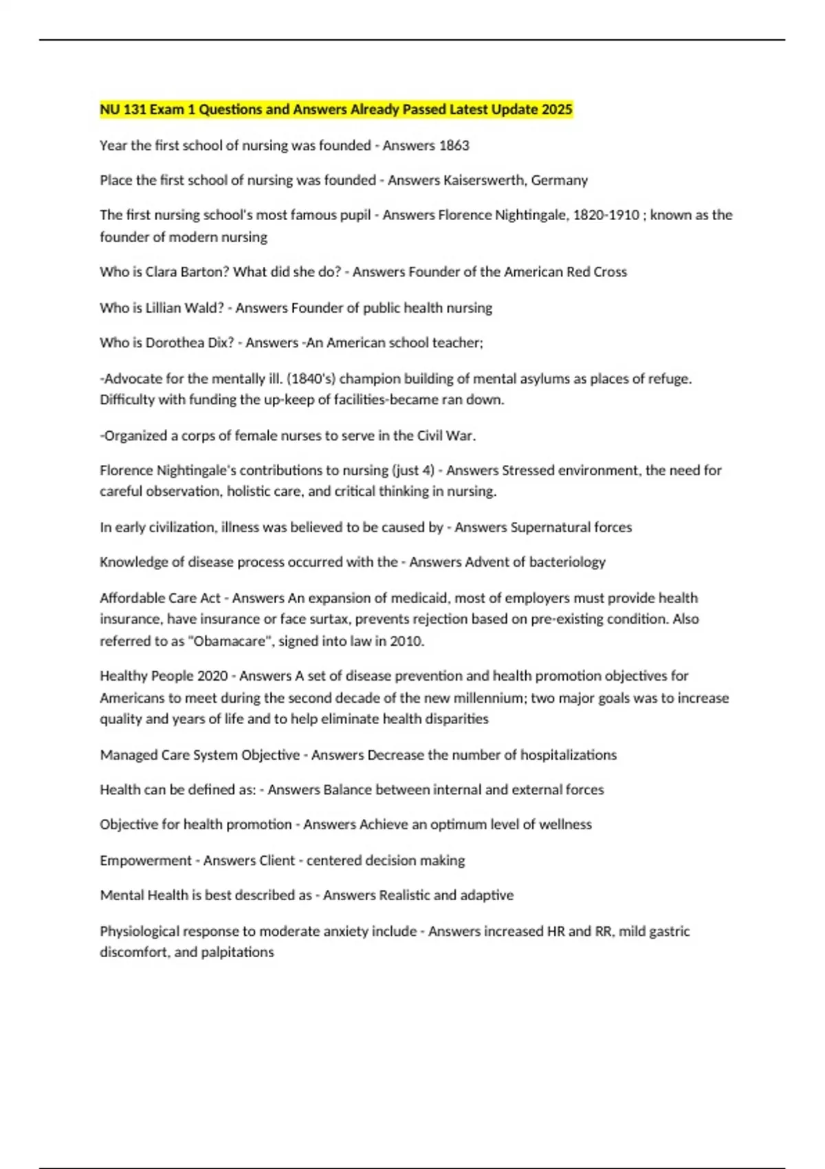 NU 131 Exam 1 Questions and Answers Already Passed Latest Update 2025