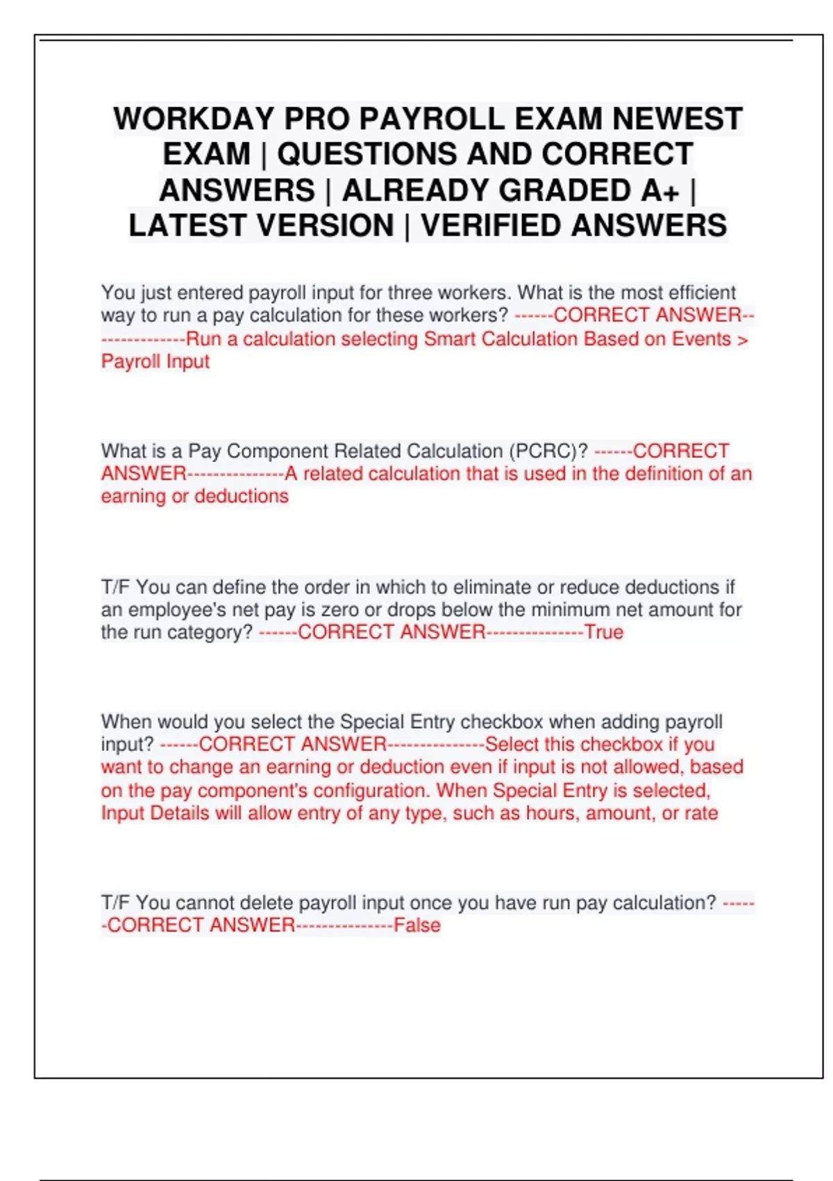 WORKDAY PRO PAYROLL EXAM BUNDLE | WORDAY HCM PRO EXAM | BEST EXAMS 2025