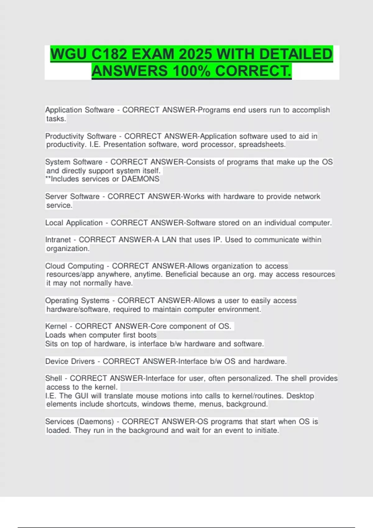 PACKAGE DEAL FOR WGU C182 EXAM WITH QUESTIONS AND ANSWERS 100% GUARANTEED SUCCESS.