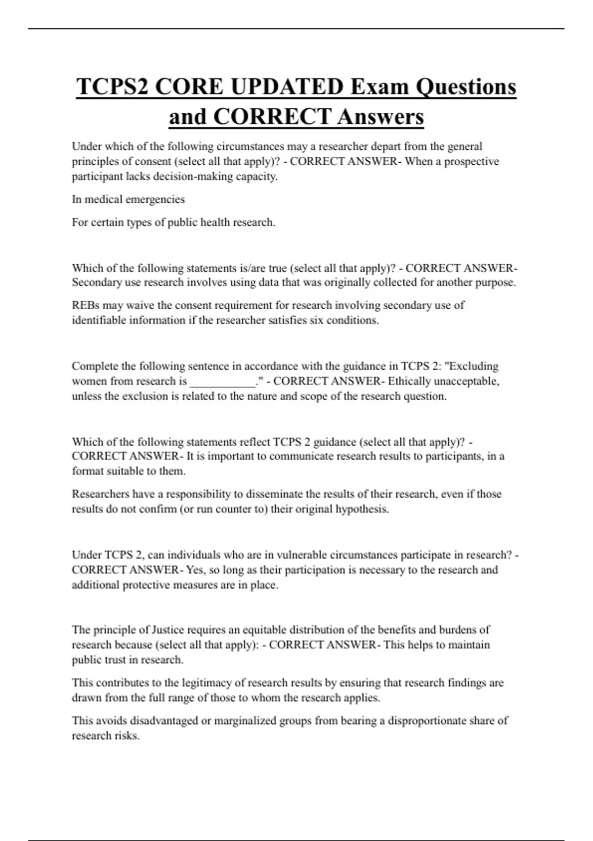 TCPS Bundled Exam Questions WITH CORRECT Answers