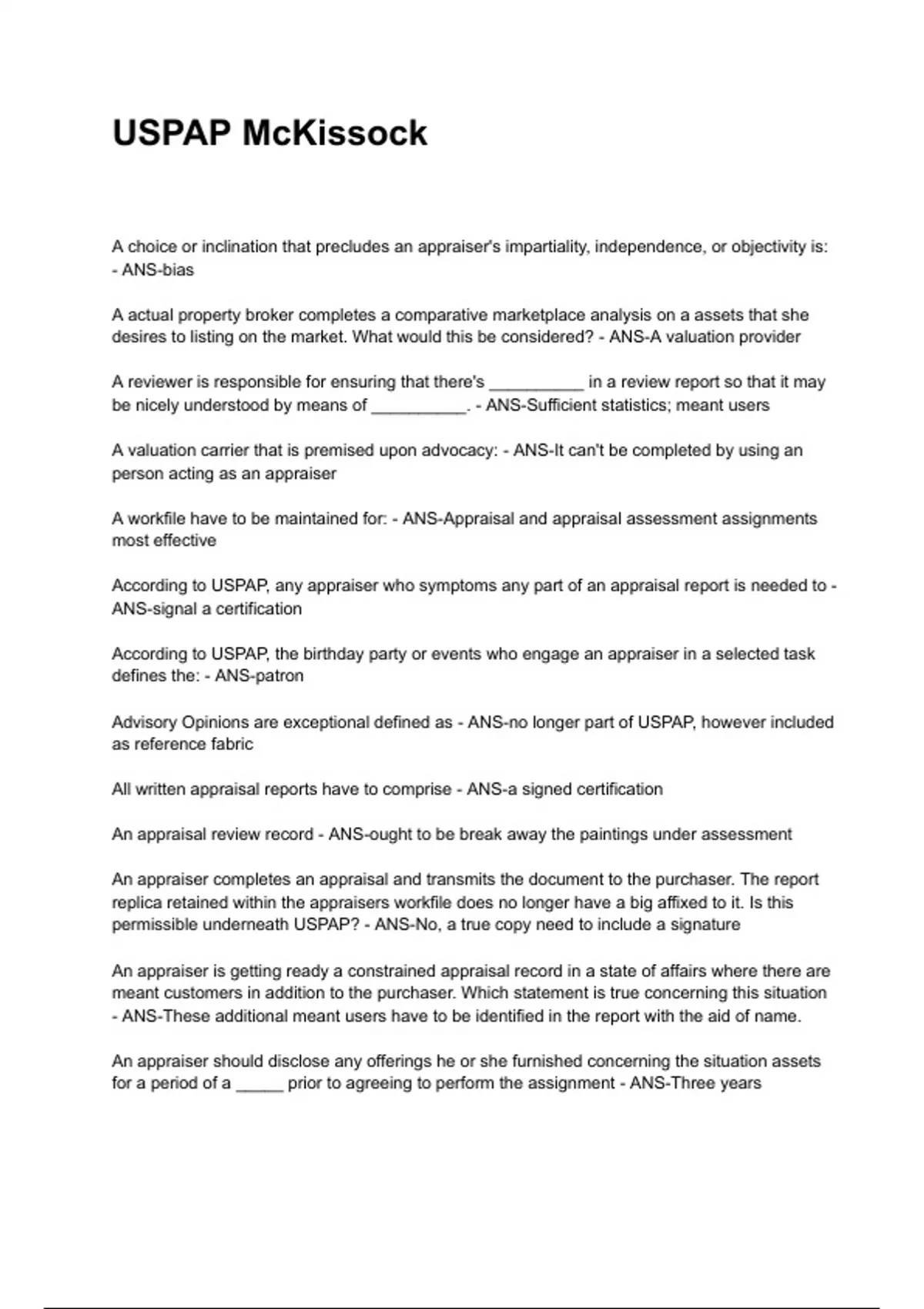 Mckissock USPAP EXAMS NEWEST 2025/2026 ACTUAL COMPLETE QUESTIONS AND CORRECT DETAILED ANSWERS (VERIFIED ANSWERS) |ALREADY GRADED A+ (ALL BUNDLED HERE!!)