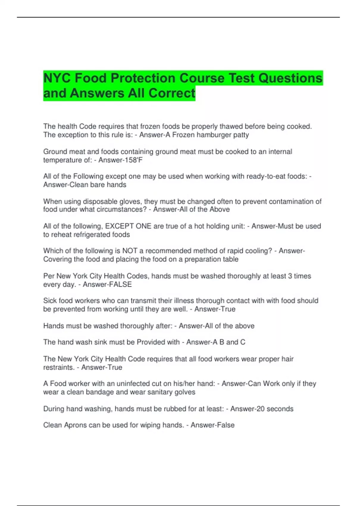 FOOD PROTECTION EXAM QUESTIONS AND ANSWERS ALL CORRECT 2 Exam (elaborations) FOOD PROTECTION EXAM QUESTIONS WITH 100% CORRECT ANSWERS 3 Exam (elaborations) FOOD PROTECTION PRACTICE TEST QUESTIONS WITH ALL CORRECT ANSWERS 4 Exam (elaborations) Food Protection Course Exam Questions with 100% Correct Answers 5 Exam (elaborations) Food Protection M