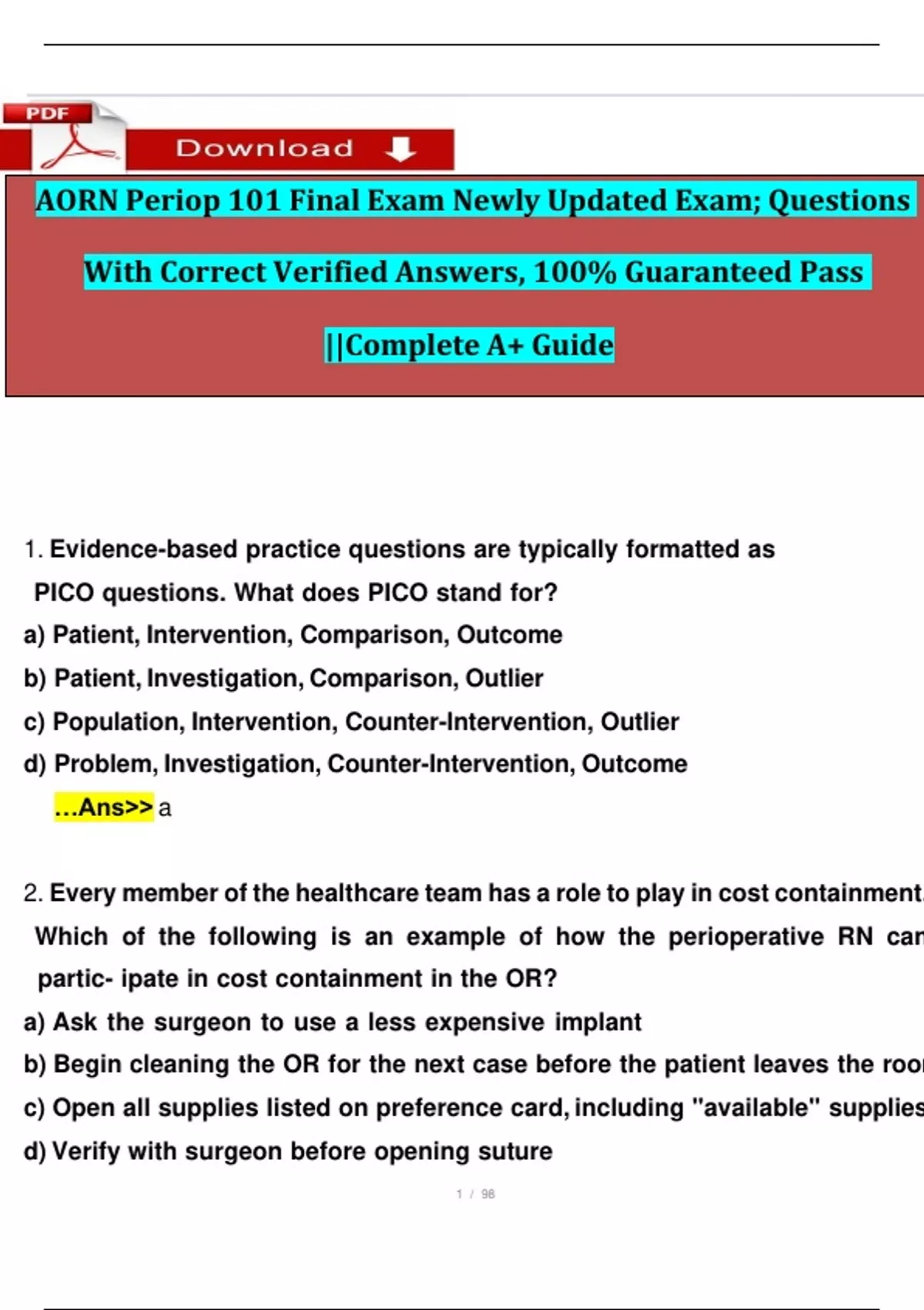 STUDY BUNDLE for AORN Periop 101 Final Exam (2024 / 2025) with 100% Guarantee Pass (COMPLETE PACKAGE)