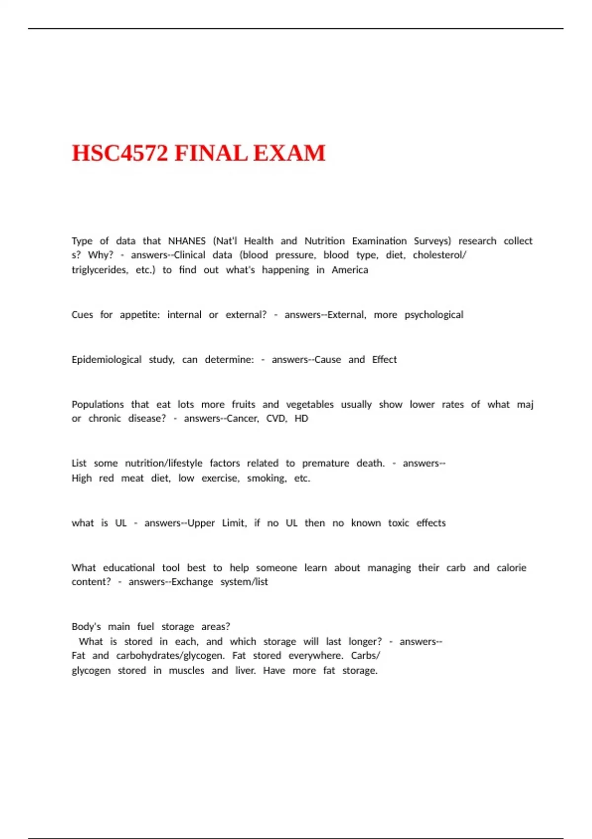 HSC4572 FINAL EXAM