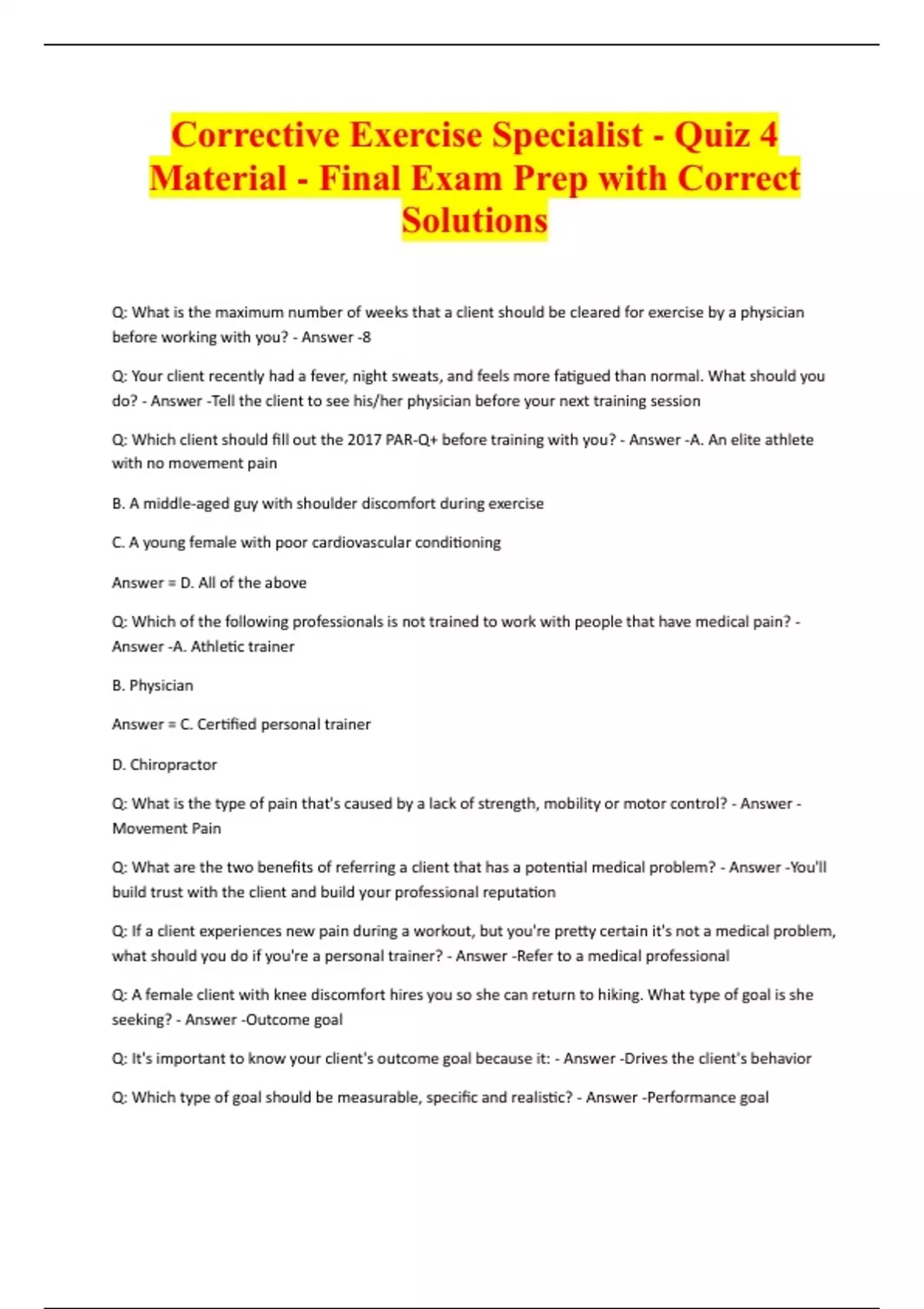 Corrective Exercise Specialist - Final Exam Exam Questions and Correct Answers with 100% Correct Answers | Latest 2025 Update.
