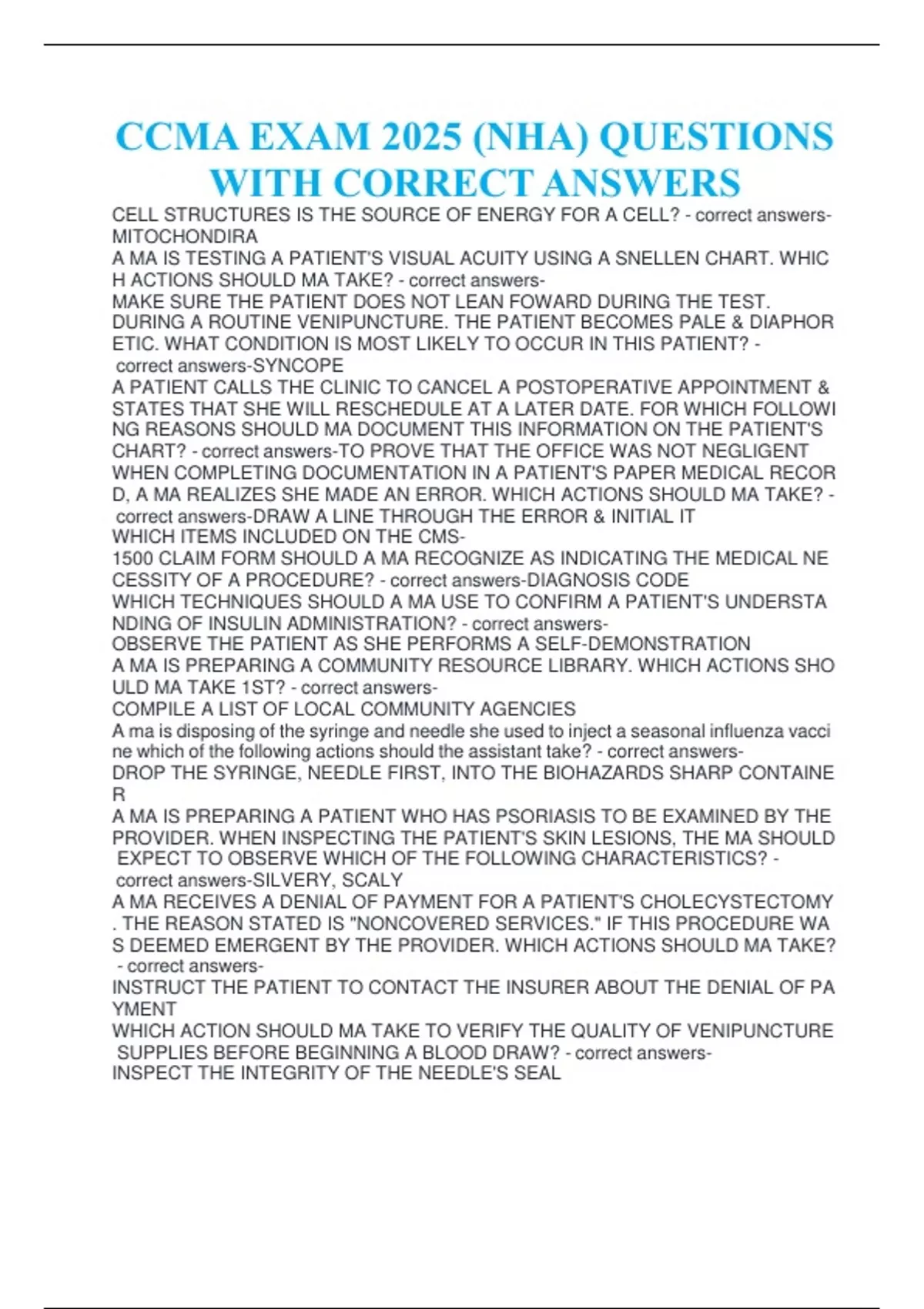 CCMA EXAM 2025 (NHA) QUESTIONS WITH CORRECT ANSWERS