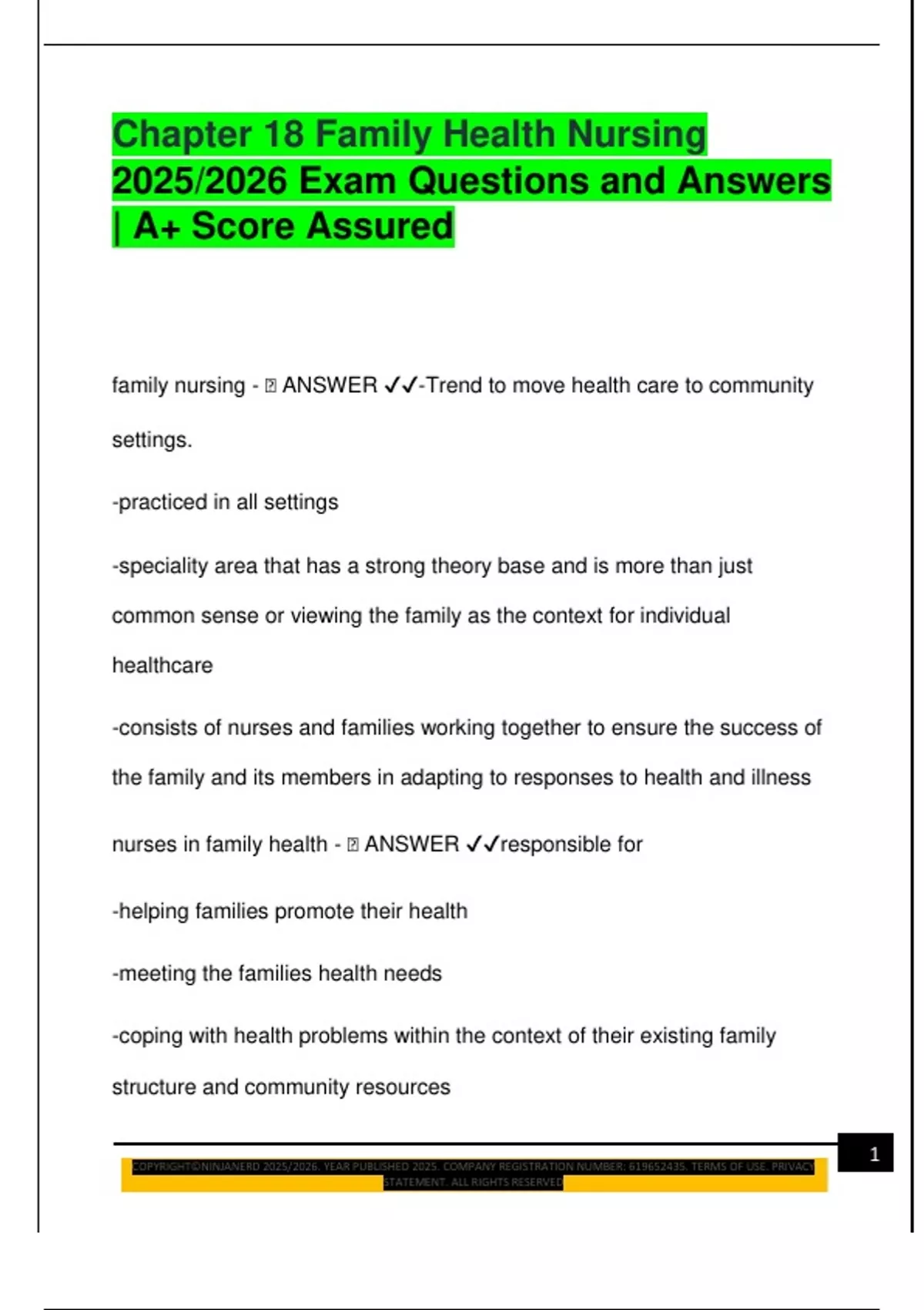 Chapter 18 Family Health Nursing 2025/2026 Exam Questions and Answers | A+ Score Assured