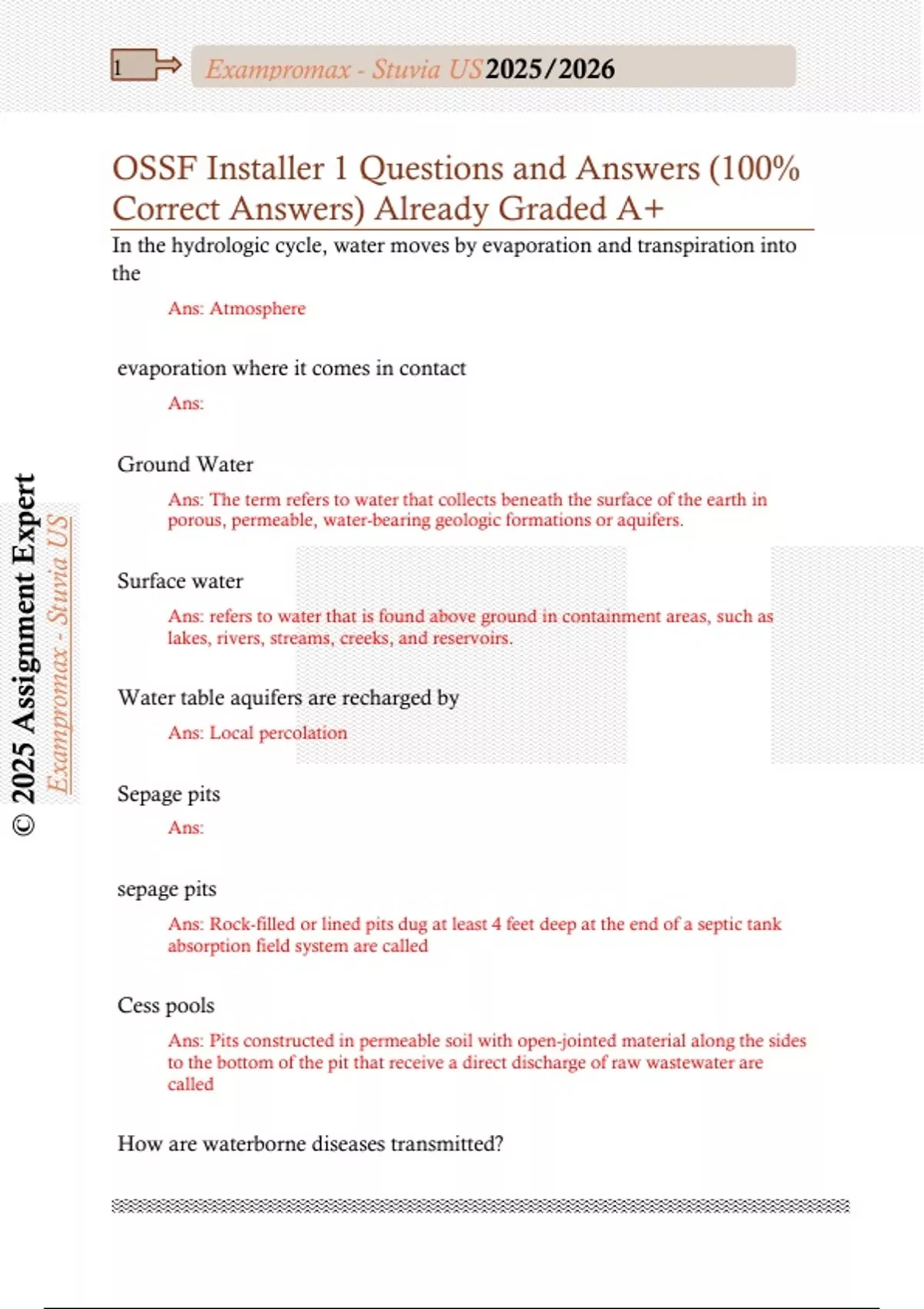 OSSF Installer 1 Questions and Answers (100% Correct Answers) Already Graded A+