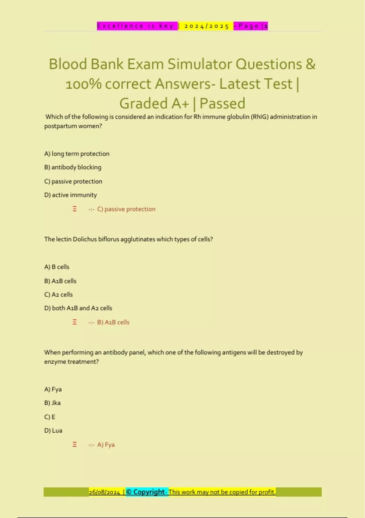 Blood Bank Questions with 100% Correct Answers | for Specific Exam Blood Bank Questions with 100% Correct Answers | for Specific Exam Mail supergrades12@gmail.comMail supergrades12@gmail.com